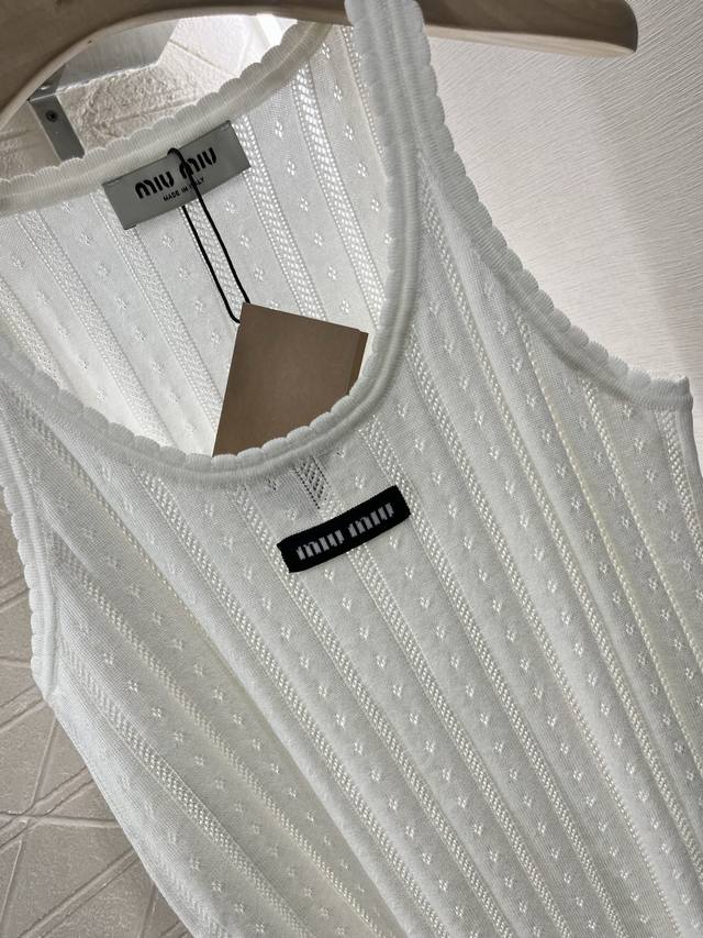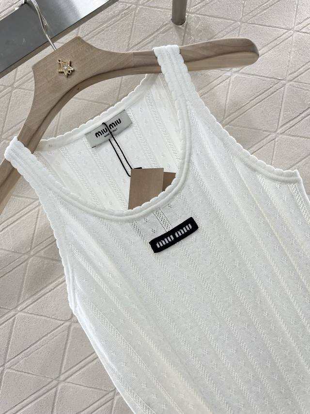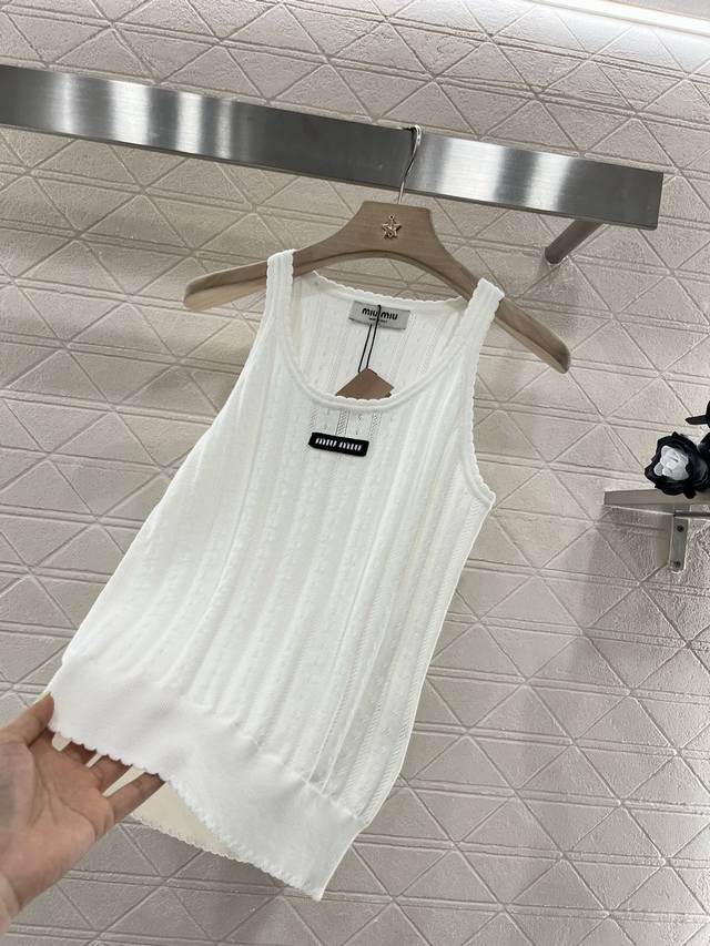 miumi*2025 New Arrivals Letter Knitted Vest Customized Yb Tencel Yarn Weaving