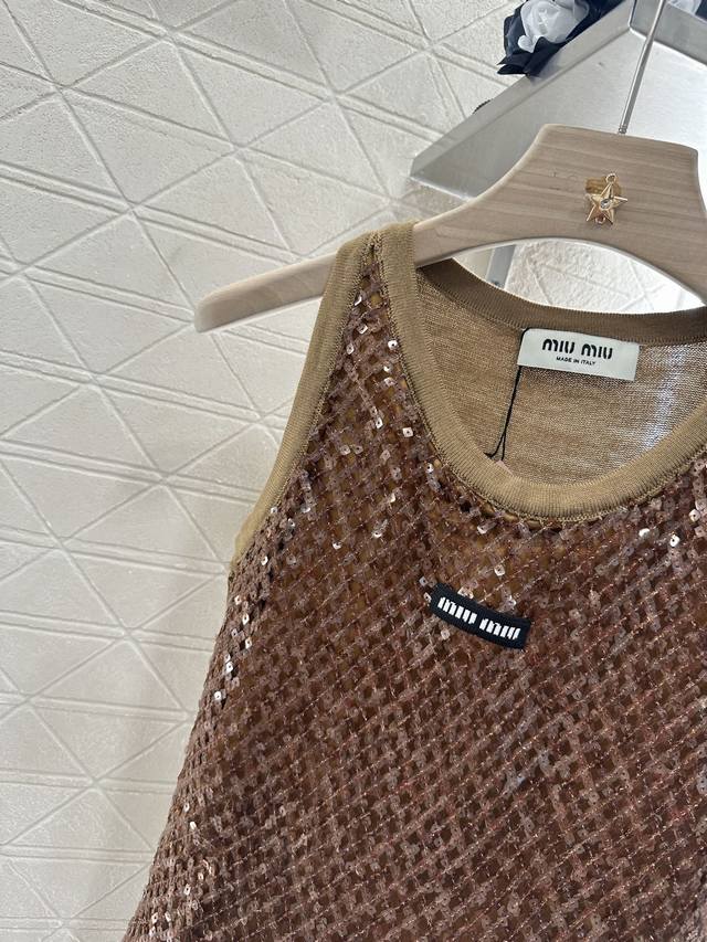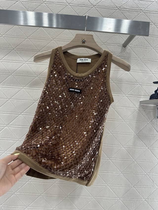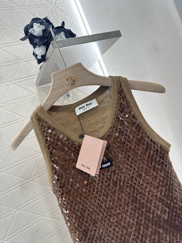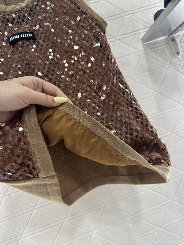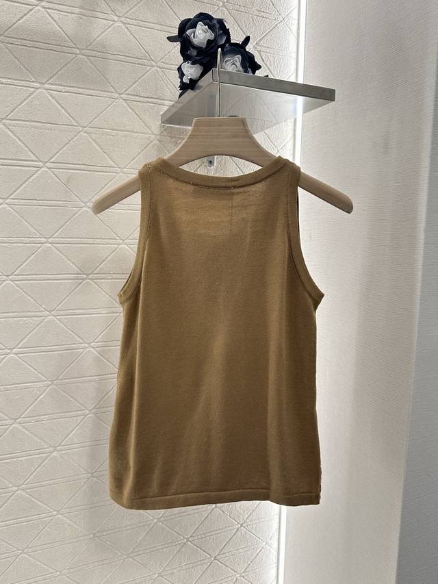 Customized Yb Silk And Wool Yarn Weaving Texture, High-End And Comfortable Regular Knitted Vest Cut All Over The Body The Same Color Brown Sequins Shine With The Light Refraction, Charming And Eye-Catching Full Marks Show The Brand Personality Highlight The High-End Sense Of Wear The Vertical Pit Texture Design Of The Edging Makes The Simple Style Wear Individuality Exquisite Wear Shows The Relaxed Tone Letter Logo Lights Up The Light Luxury And Fashionable Temperament Can Be Worn Alone Or Layered Fashionable Wear In All Seasons The First Choice For Customized Surface And Accessories Look For The High Version