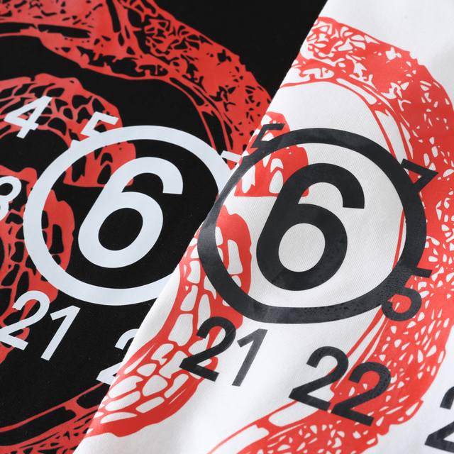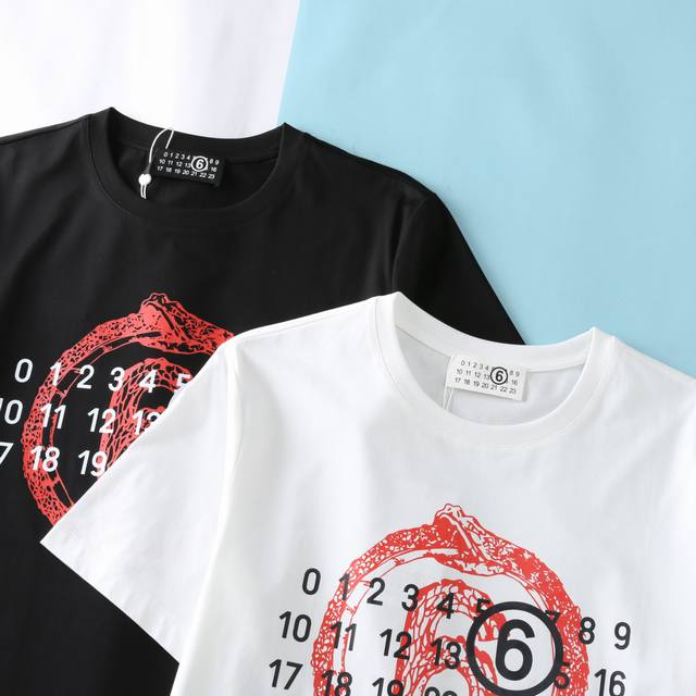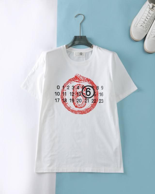 mm6 Ss Summer New Men's Classic Number 6 Printed Logo Fashion Casual Round Ne