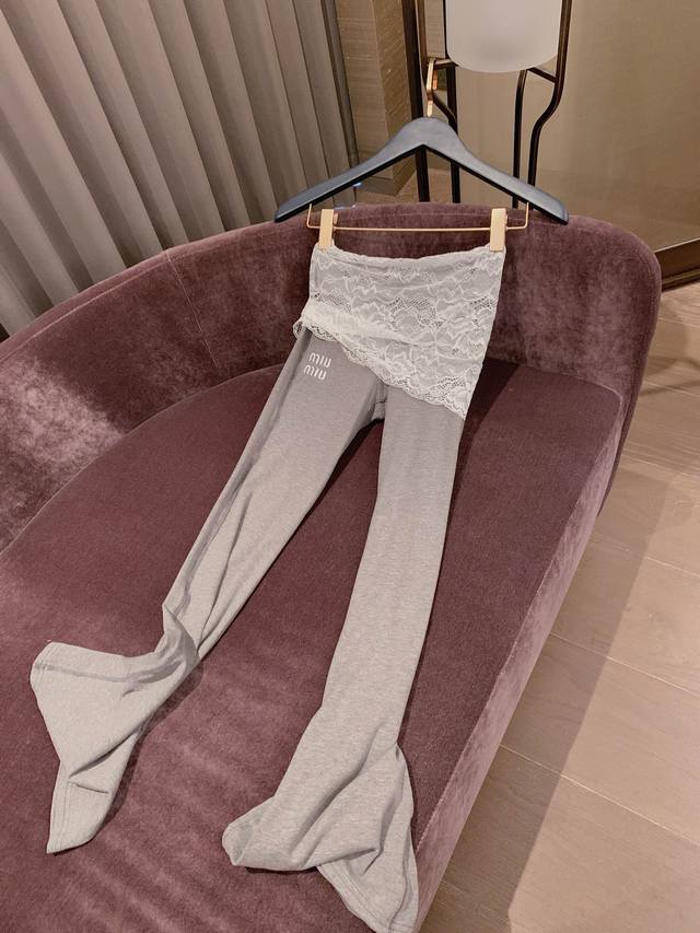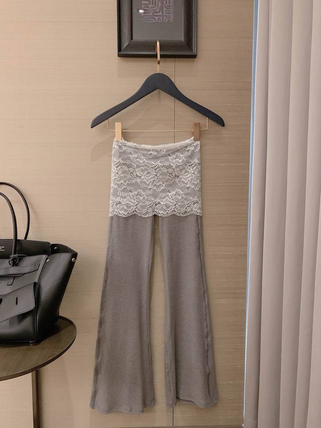 Lace Waist Stitching Embroidery Trousers