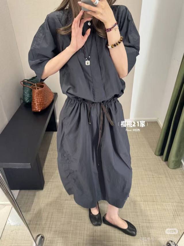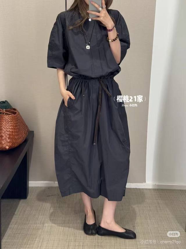 New 25 Spring And Summer New Lem Custom Charcoal Cotton Drawstring Dress Size Sm