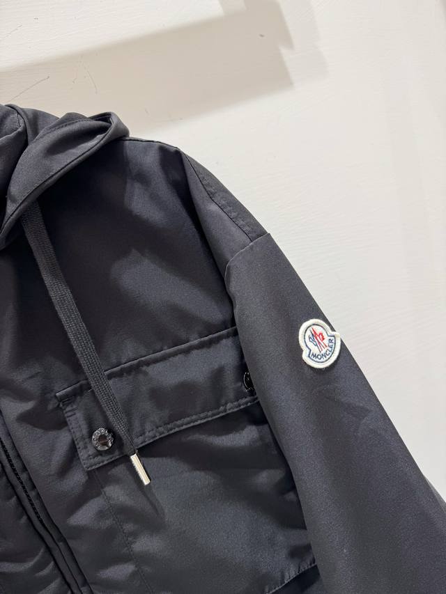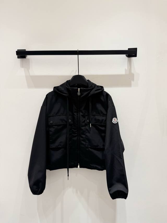 New 25Moncl Leda Women's Short Hooded Parka Jacket With Hidden Hood And Adjustable Drawstring Hem. Neutral Color Design With Ventilated Mesh Lining And Patch Pockets. Suitable For Daily Wear