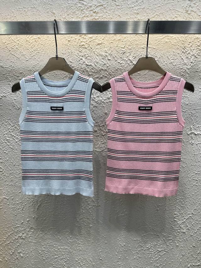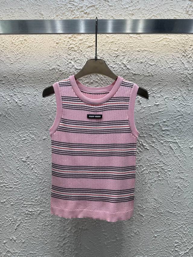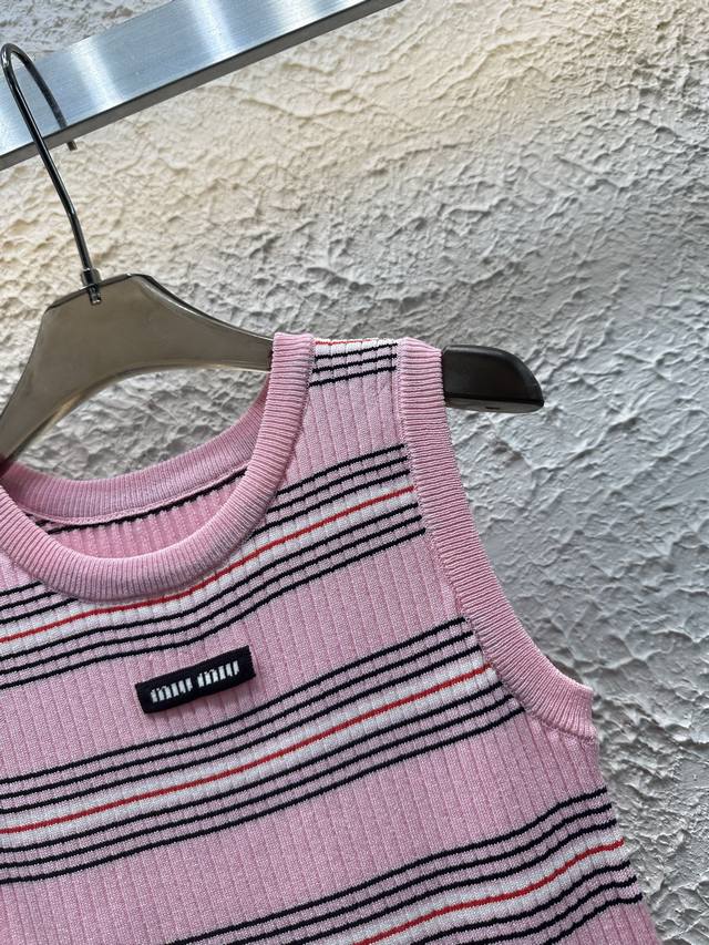 Miumi 25 Summer New Striped Color Matching Knitted Vest