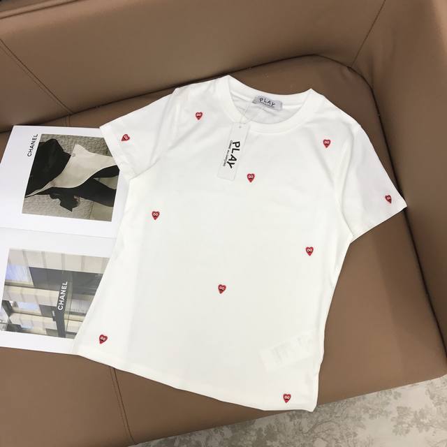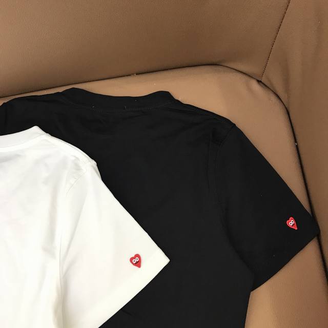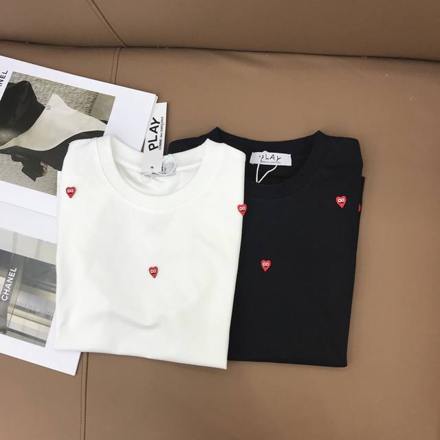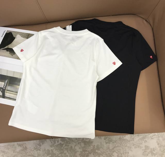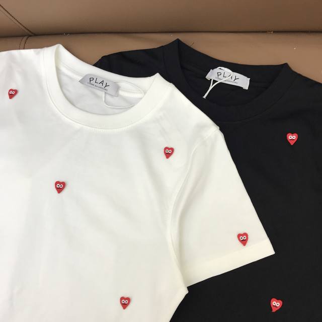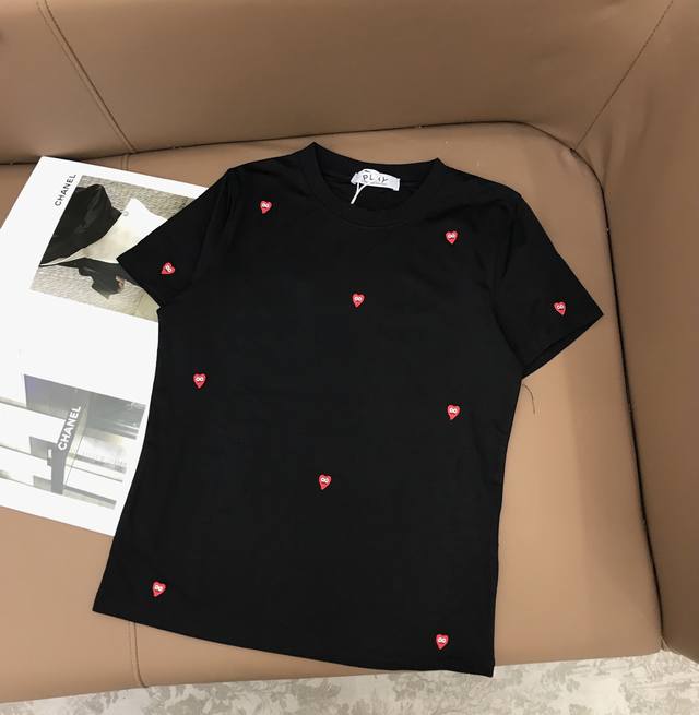 Pl Kawasaki** Three-Dimensional Embroidered Heart Pattern Round Neck Short-Sleeved T-Shirt Black White