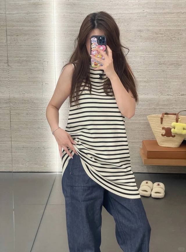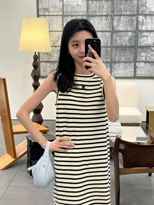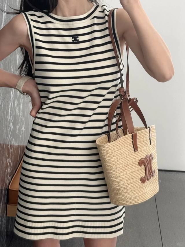 New Latest Ce 25New Arc De Triomphe Striped Knitted Vest Dress Size Sml