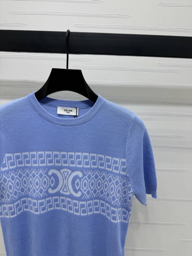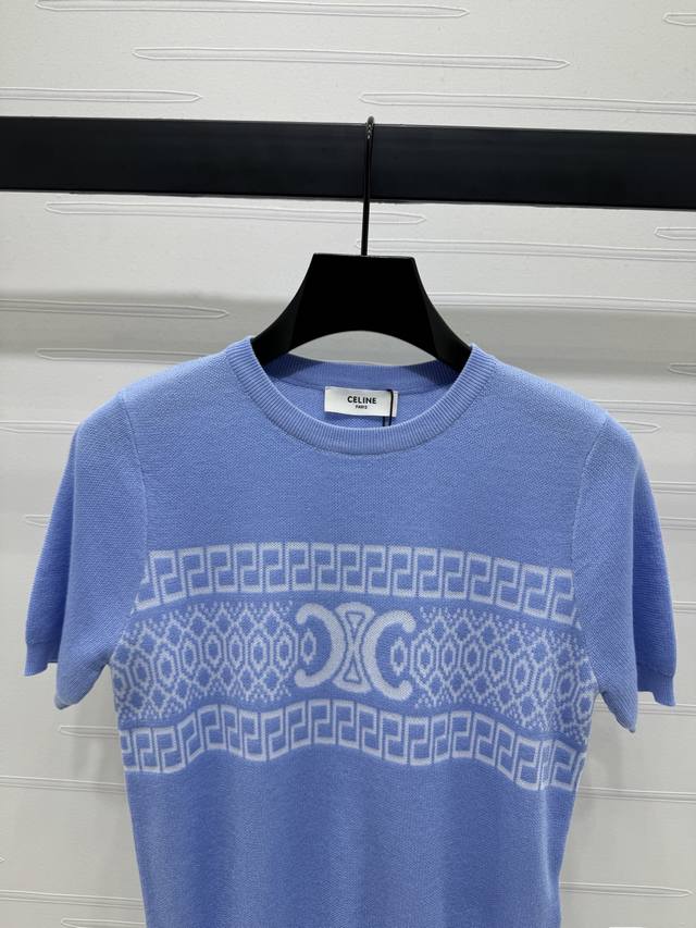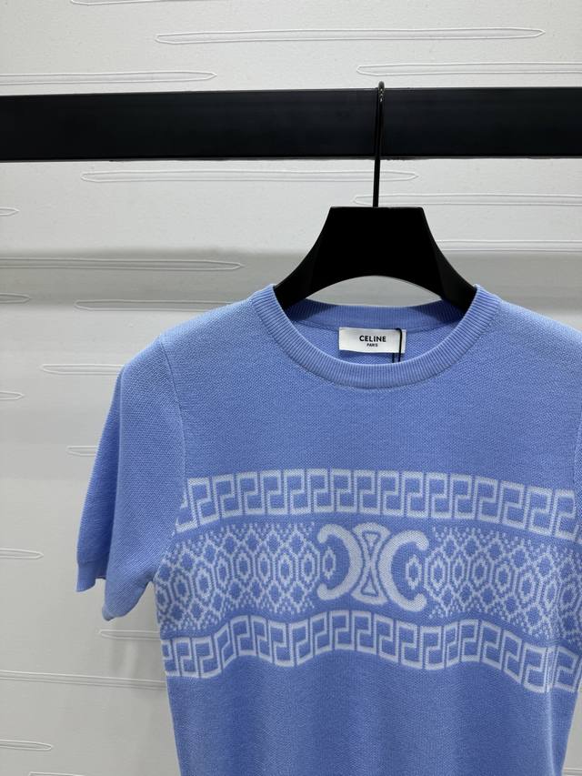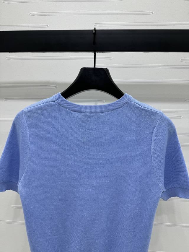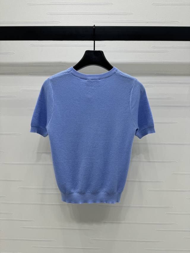 New Original High-End Quality Celin*2025 Spring And Summer Latest Series Round Neck Knitted Short Sleeves Customized Ice Silk Material Delicate Texture Soft And Comfortable Round Neck Knitted Short Sleeves Cut Chest Outline Arc De Triomphe Logo Decoration Display Brand Tone All-Match Style Not Picky Age Skin Color Matching Skirt Pants Suitable For Age Reduction Fashionable Style 2 Colors Sm-L3 Size High Quality Bulk A706B290C