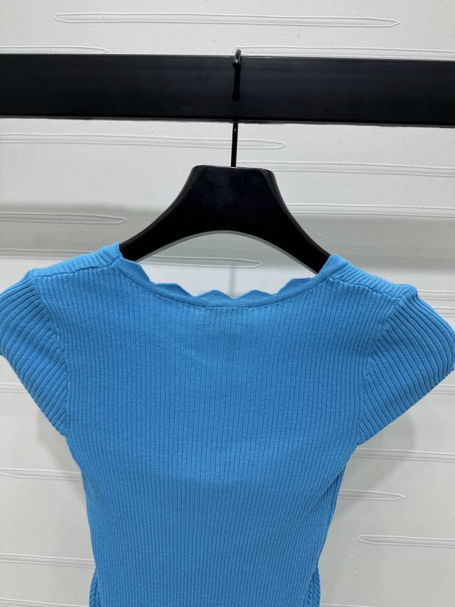 New Original High-End Quality Chane* 2025 Spring And Summer Latest Series French Wave Collar Knitted Short Sleeves Customized Yb Knitted Material Woven Soft Skin-Friendly Comfortable And Stylish Knitted Short Sleeves Tailored Waist Hollow Neckline Appropriate Skin Exposure Beautification Head And Shoulder Ratio More Slimming Whole Body Groove Collision To Form A Sense Of Hierarchy Chest Contrast Color Implant Double C Logo Embellishment Design Full Of Elasticity Sweet And Fashionable Hot Girls Must Buy Single Item 3 Colors Sm-L3 Size High Quality Large Goods A706B320C