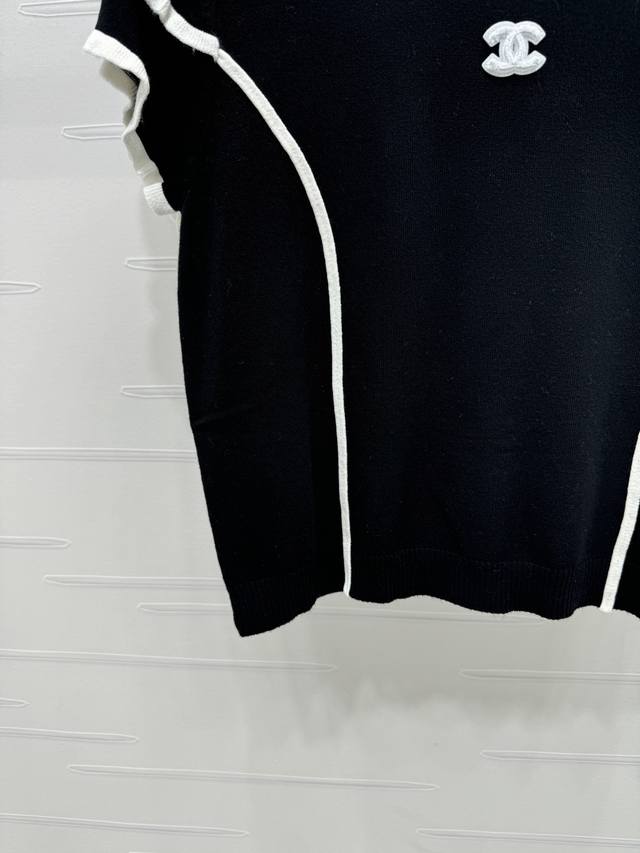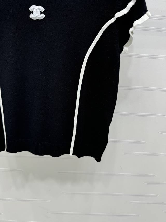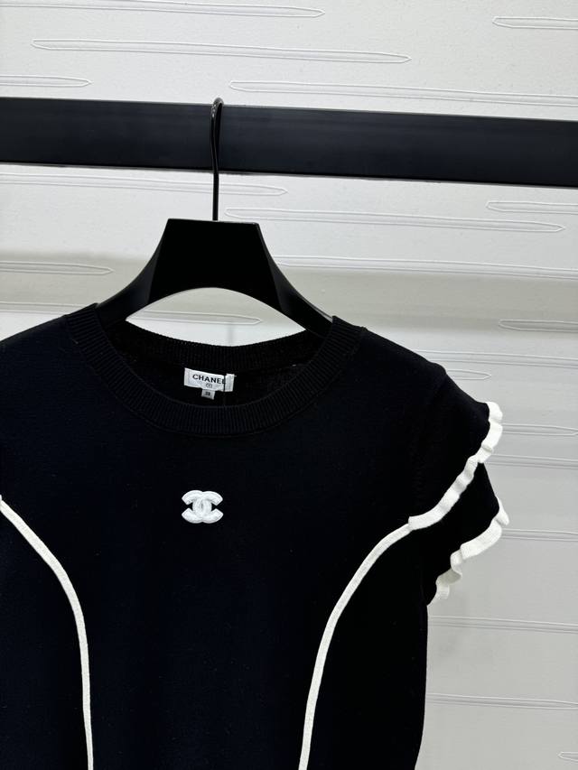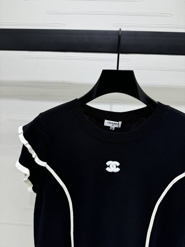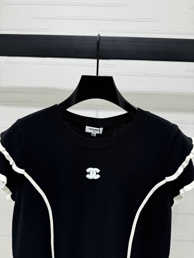 New Original High-End Quality Chane* 2025 Spring And Summer Latest Series Lace Round Neck Knitted Short Sleeves Customized Imported Material Soft And Comfortable Round Neck Knitted Short Sleeves Cut Black And White Contrast Outline Fungus Lace Contour Line Adds Exquisite Tonality And Elasticity Fits The Body Shape And Makes It Look Thinner. The Double C Logo Is Decorated On The Chest To Show The Brand Tonality. The Style Is Versatile And Not Picky About Age And Skin Color. It Can Be Matched With Skirts And Pants To Reduce Age And Is Fashionable And Foreign Style. 2 Colors Sm-L3 Sizes High Quality Large Goods