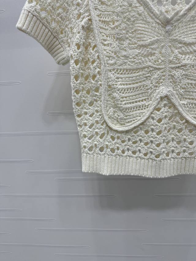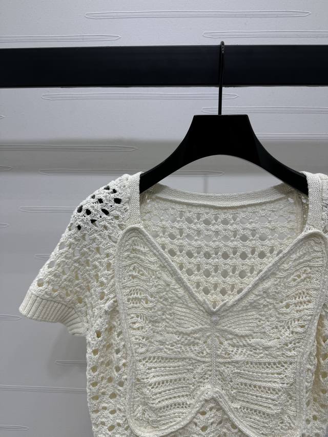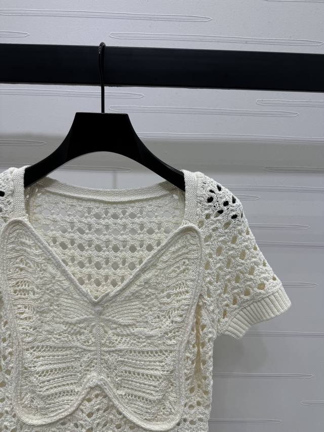 New Original High-End Quality Dio* 2025 Spring And Summer Latest Series Hand-Crocheted Short Sleeves Customized Imported Yarn Woven With Superior Texture Sweetheart Neckline Knitted Short Sleeves Cut To Reveal Collarbone For A Slimmer Look The Garment Uses Advanced Needlework Technology The Whole Body Is Covered With Three-Dimensional Hand-Crocheted Patterns The Butterfly Pattern On The Front Adds A Literary Atmosphere To The Simple Outfit Easily Show The Playful Girl Style Slim Fit, Slim And Fashionable 1 Color Sm-L3 Size High Quality Large Goods A706B390C