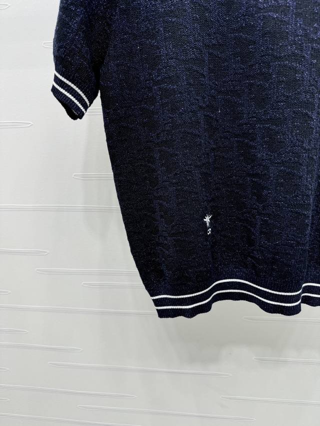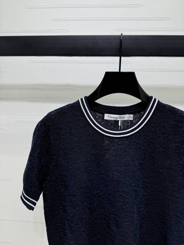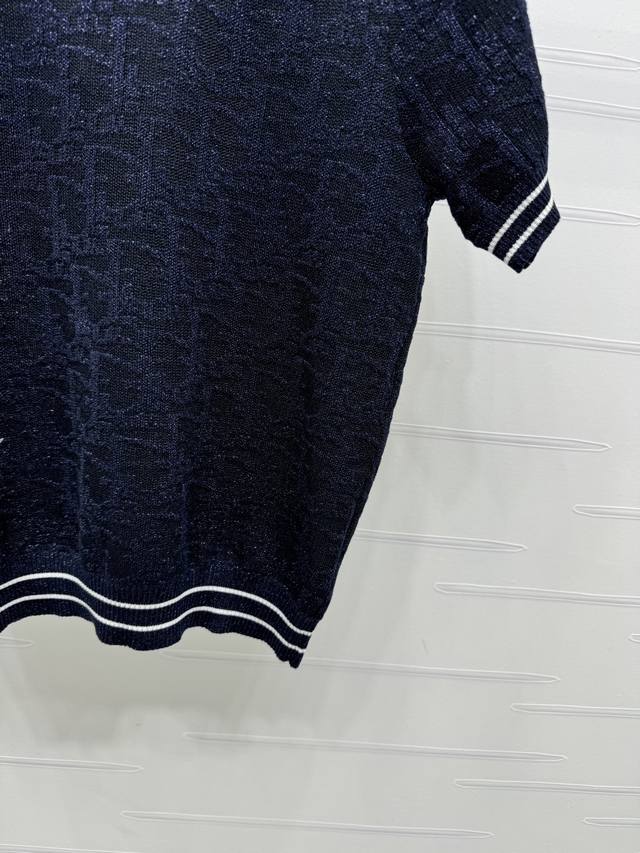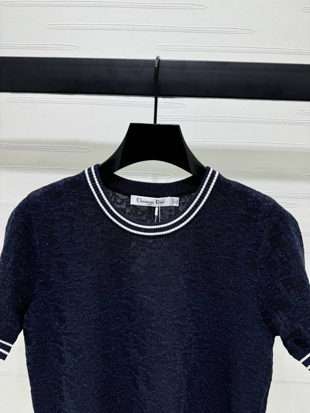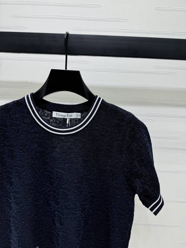 New Original High-End Quality Dio* 2025 Spring And Summer Latest Series Jacquard Logo Knitted Short Sleeves Custom Imported Knitted Material Light And Comfortable Slightly Transparent Effect Adds Feminine Charm Full Jacquard Pattern All Over High-End Fashionable Temperament Classic Version Versatile And Not Picky White, Rich And Beautiful Must-Have Item 2 Colors Sm-L3 Size High Quality Large Goods