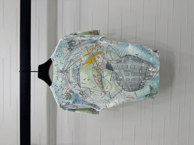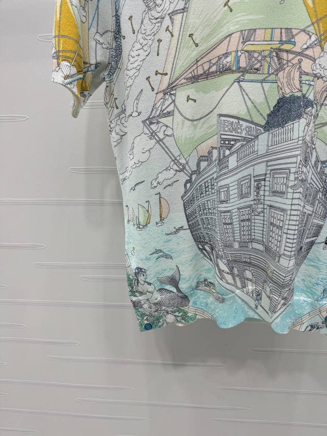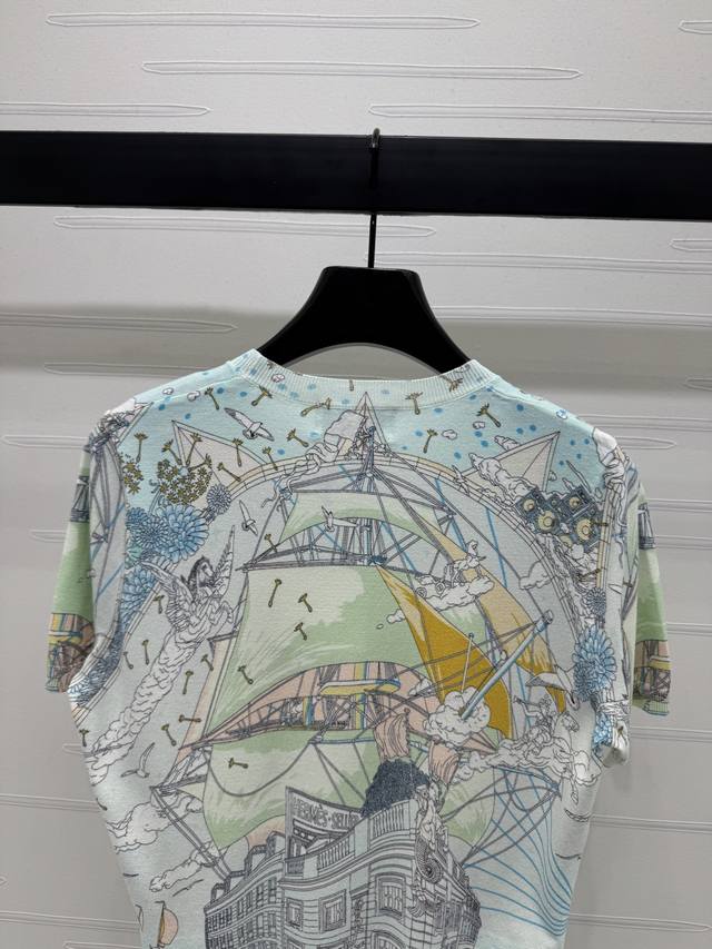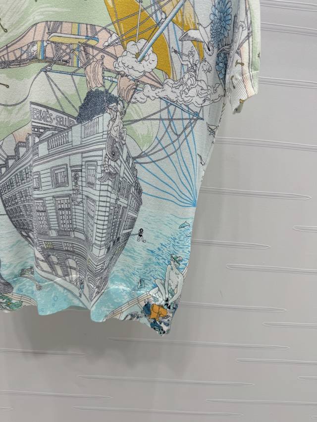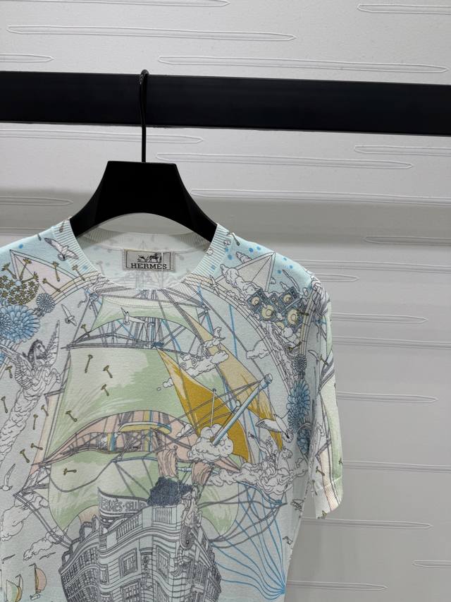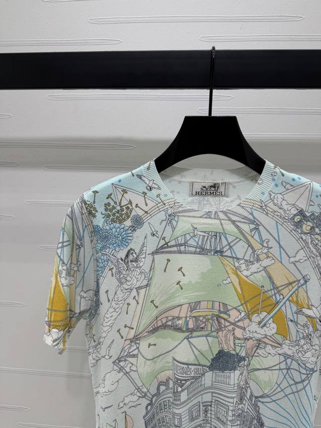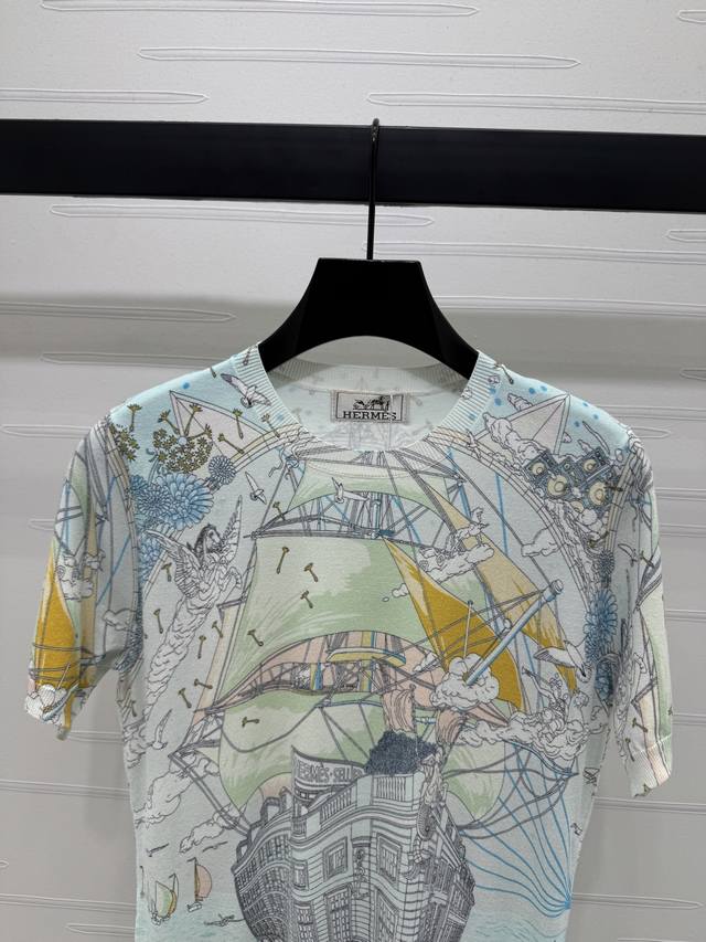 New Original High-End Quality Hermes* 2025 Spring And Summer Latest Series Corsair Totem Knitted Short Sleeves Customized Yb Silk And Wool Yarn Material Woven Soft And Breathable Texture Full Of Ribbed Collar Knitted Short Sleeves Cut With Multi-Color Printed Pattern Craftsmanship Implies Never Stopping Vigor And Vitality Wear A Different Style Charm Everywhere Show High-End And Elegant Temperament Upper Body High-End Fashion 2 Colors Sm-L3 Size High Quality Large Goods A706B360C