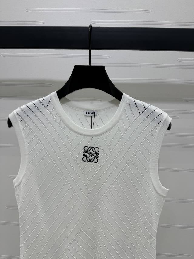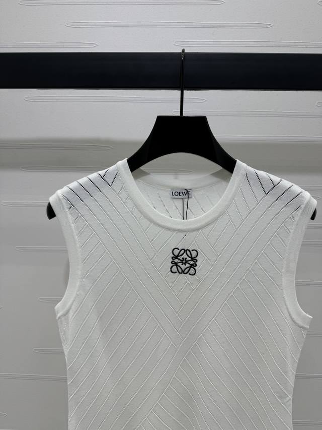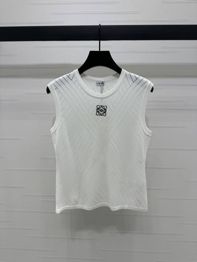 New Original High-End Quality Loew*2025 Spring And Summer Latest Series Totem Embroidery Knitted Vest Customized Tencel Yarn Woven Delicate Texture Soft And Comfortable Round Neck Knitted Vest Cut All Over Geometric Pattern Hollow Treatment Centered Embroidered Totem Pattern The Overall Effect Is Slightly Transparent To Show The Brand Tonality The Threaded Edging Adds Exquisite Tonality Matching With Elastic Fabrics The Silhouette Is Slimmer And More Inclusive. The Style Is Versatile And Does Not Pick Age And Skin Color Matching With Skirts And Pants Is Suitable For Reducing Age And Fashionable Retro Style 2 Colors Sm-L3 Sizes High Quality Bulk A706B320C