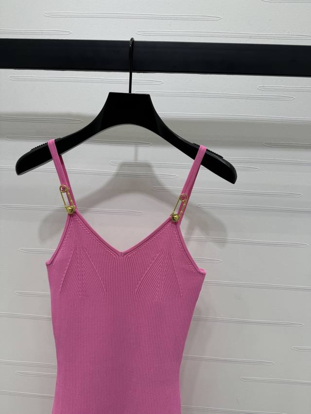 New Original High-End Quality Versac*2025 Spring And Summer Latest Series Pin Knitted Suspender Skirt Custom Imported Fabric Soft And Comfortable Full Of Elasticity Retro And Fashionable And High-End Single Product Thin Shoulder Straps With Custom Medusa Logo Pins Super Exquisite And Fashionable V-Neck Design Shows The S-Shaped Curve It Is Full Of Aura And Perfectly Modifies The Body Shape. There Is No Reason Not To Love It. A Must-Have For White, Rich And Beautiful Women 1 Color Sm-L3 Size High Quality Large Goods A706B360C