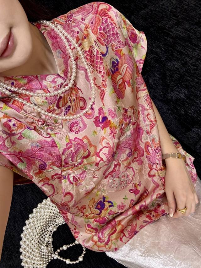 Re-Order Shipment 100 People Silk Xiangyun Yarn Fabric Exquisite Digital Printing Hot Style Hot Style Hot Style Red Color Smlxl