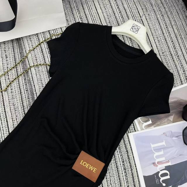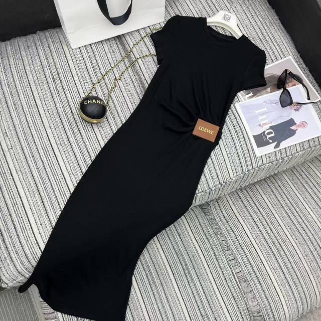 New Release 25Ss New Dress Highly Recommended Pleated Waist Design Letter Leather Brand Embellishment Sml