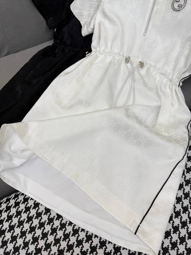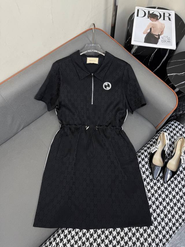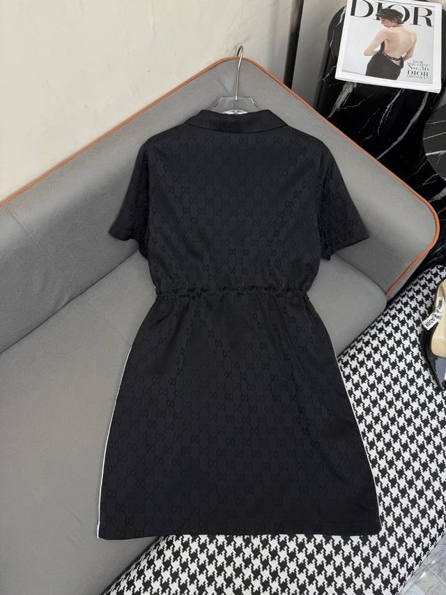 New Release 25Ss New Lapel Dress Waist Drawstring Straight Design Double G Jacqu