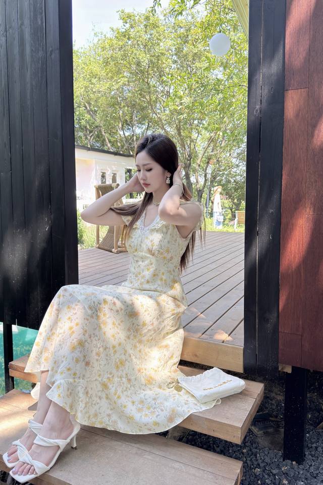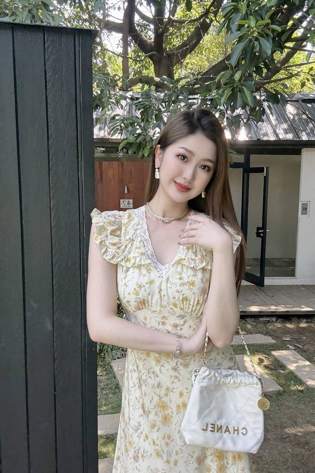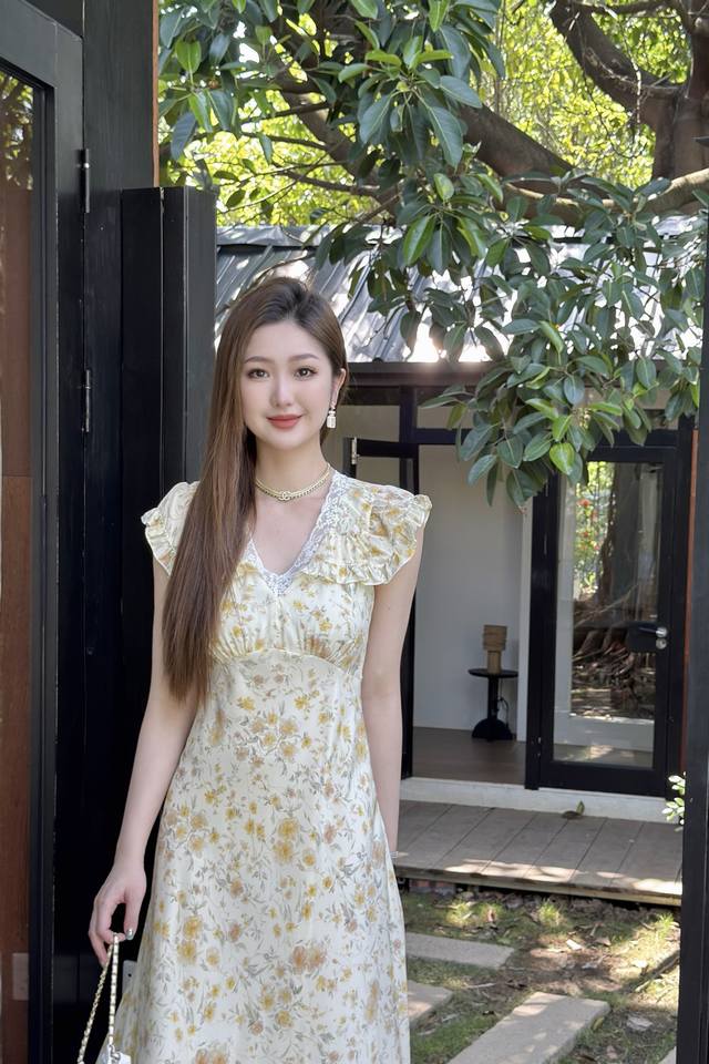 Original Design Exclusive Style Super Sweet And Gentle French Silk Dress Ruffles And Lace Trims Clean Cut Fits The Body Shape And Outlines The Graceful Lines The Ruffles On The Shoulders Are Like Smart Wings, Playful And Sweet, Injecting Gentleness And Vitality Into The Overall Shape. Available Now Sml.