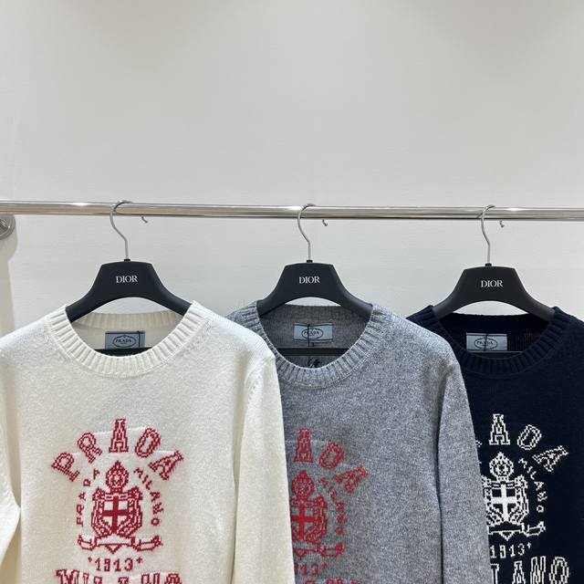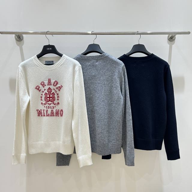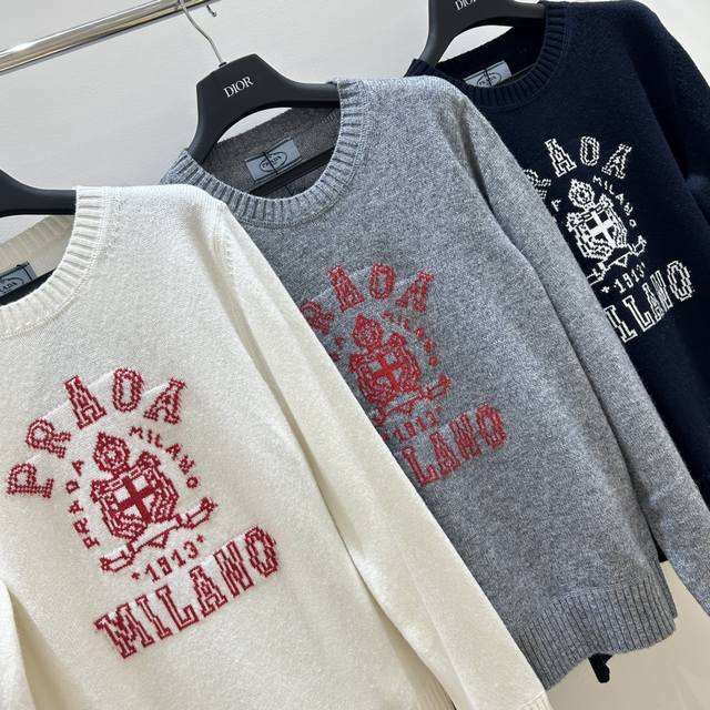 New Women's Clothing Is Available. Simple And Clear Prada Letter Jacquard Round Neck Long Sleeve Design Wool Sweater Warm And Fashionable Classic All-Match Easy To Control Casual Style Three Colors And Three Sizes Ready To Supply