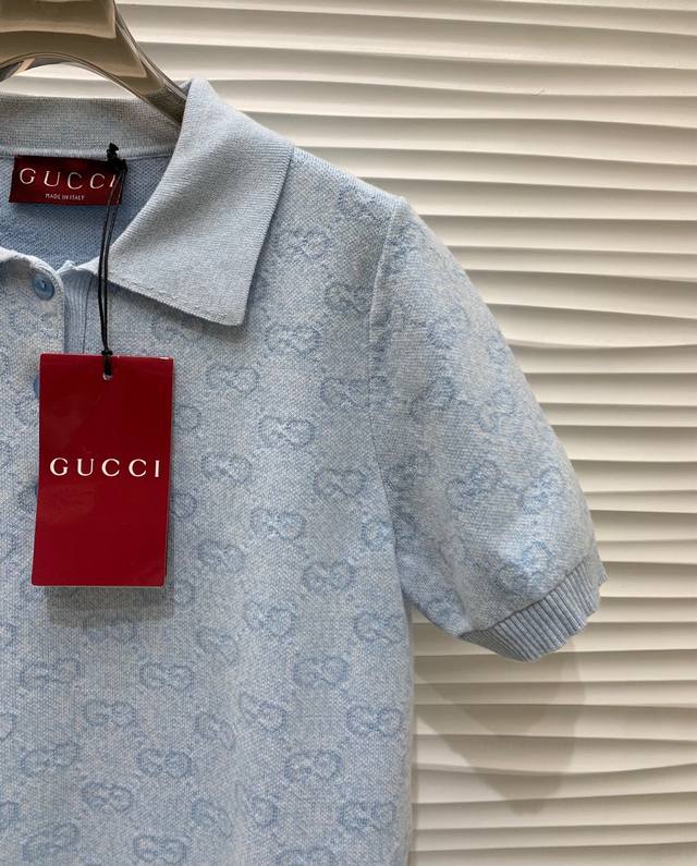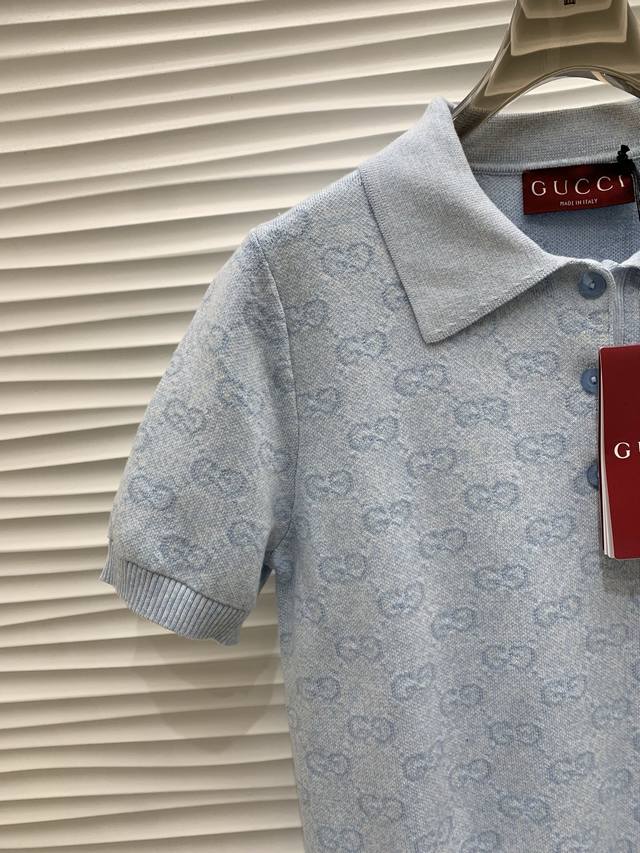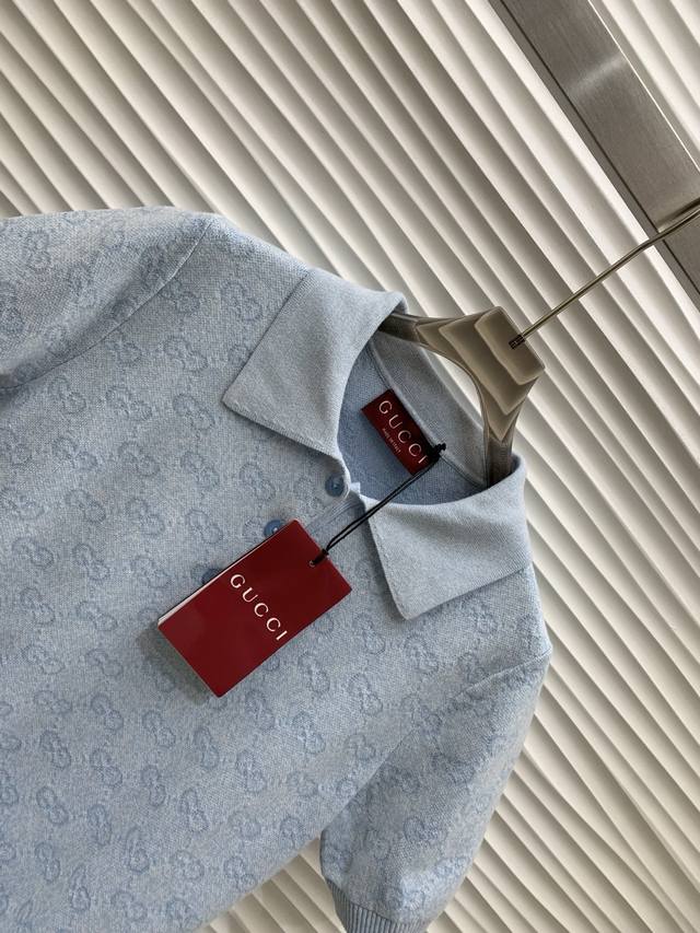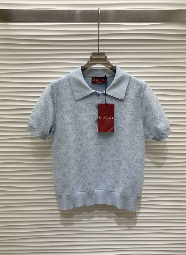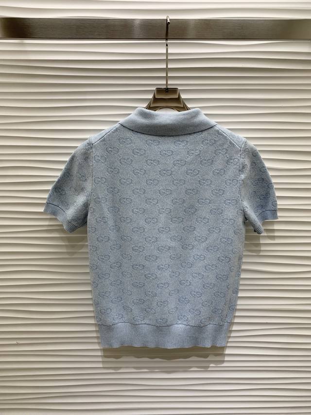 Original Gu......2025 Spring And Summer New Fashion Jacquard Logo Lapel Knit Top