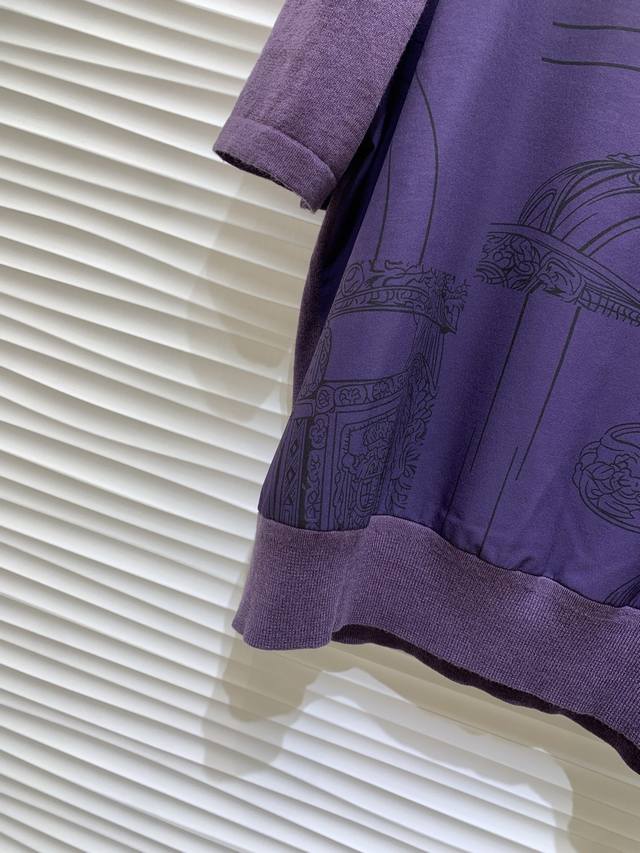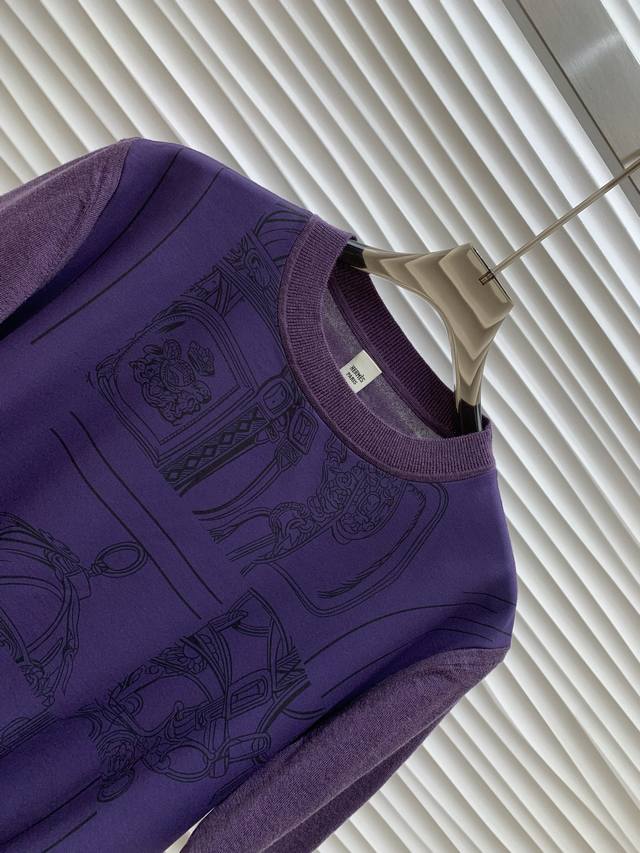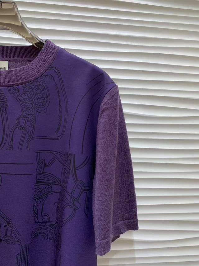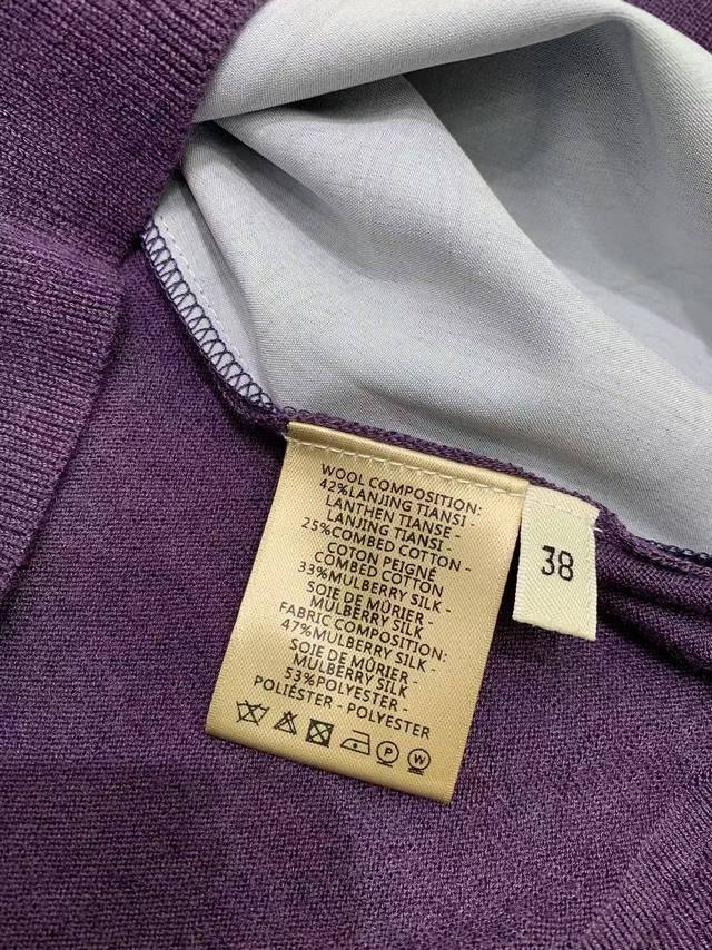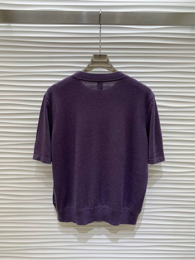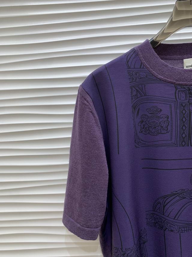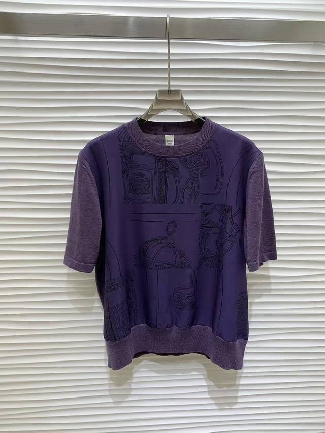Original Hh 2025 Spring And Summer New Thin Silk Cotton Knitted Stitching Round Neck Top Mixed Yarn Delicate And Soft Feel Invincible Original Full Positioning Jacquard Craft Pattern Fashionable And Generous Temperament Round Neck Elegant And Fashionable Upper Body Atmosphere Elegant Temperament Original 2 Colors Code 36 38 40 Sml