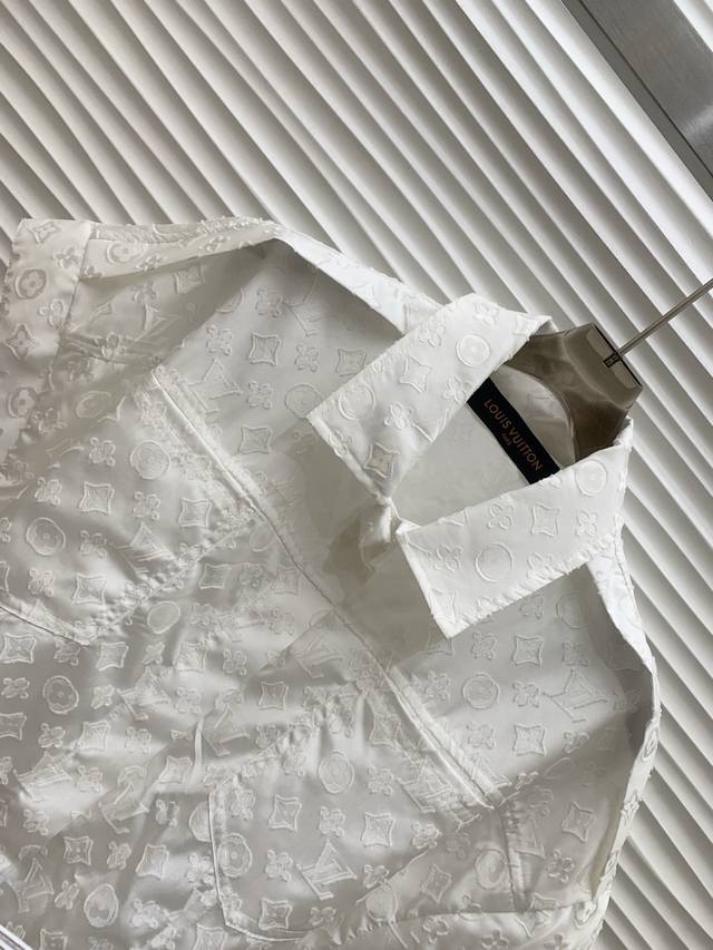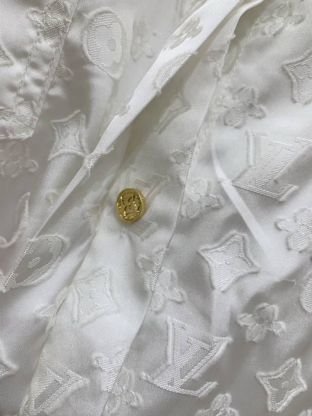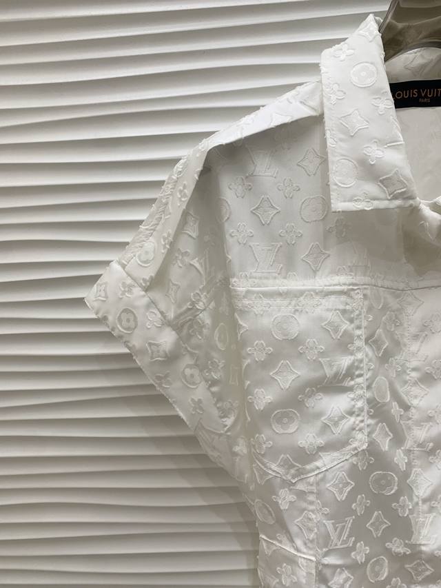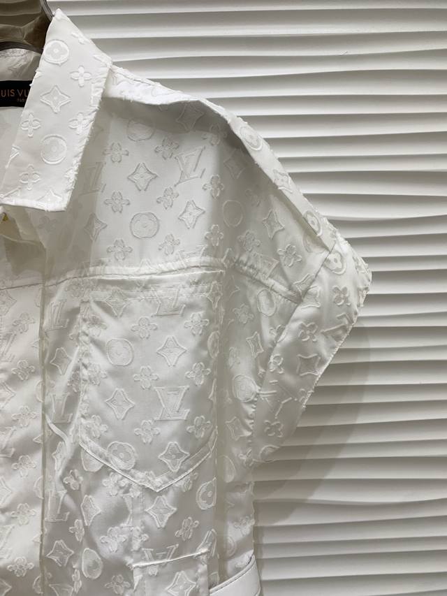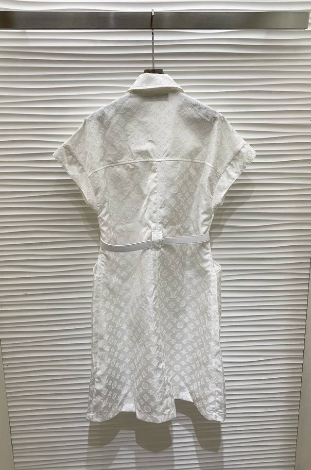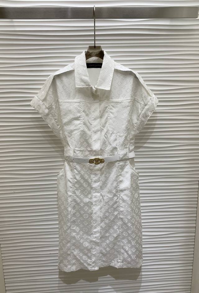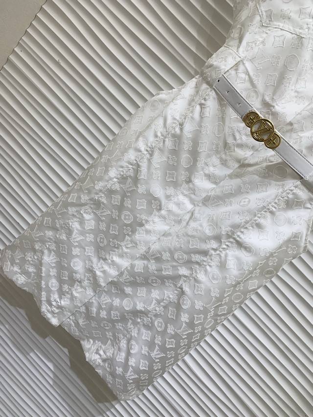 Original L L.....2025 Summer New Fashion Belt Jacquard Dress Customized Yb Imported Jacquard Material Processing Presents Full Body Three-Dimensional Raw Edge Four-Leaf Clover Letter Pattern Highlights Brand Tone Simple Pure White Matching Metal Buckle Leather Belt Adjustable Design Adds Layered Shape Waist Symmetrical Pocket Decoration Highlights Casual Fashionable Commuting Date Wear High-End Elegant Original 1 Color Code Sml