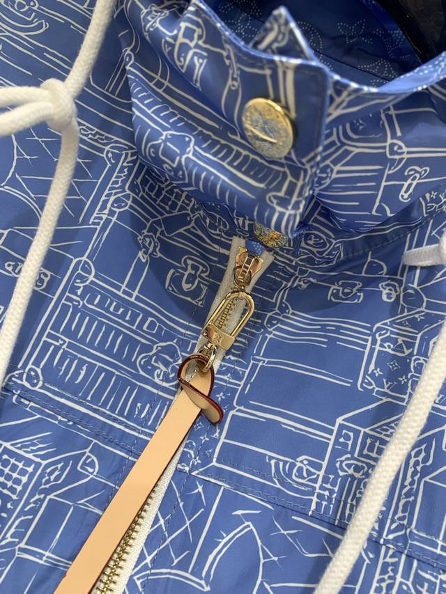 Original Ll.....2025 Summer New Fashion Hooded Printed Jacket Customized Yb Imported Sunscreen Nylon Material Glossy And Smooth Style The Inside Of The Brim Is Decorated With The Iconic Four-Leaf Clover Letter Background Embellished With Hand-Painted Sketch Sense The Leather Suitcase Letter Print Pattern Highlights The Brand Tone, Full Of Personality And Creativity, With Leather Buckle Chain Buckle Rope Knot Drawstring Adjustment Design, With Cuff Threaded Edging Elastic Details To Add A Sense Of Layering, Casual Wear, Colorful And Fashionable Original 1 Color Code Sml