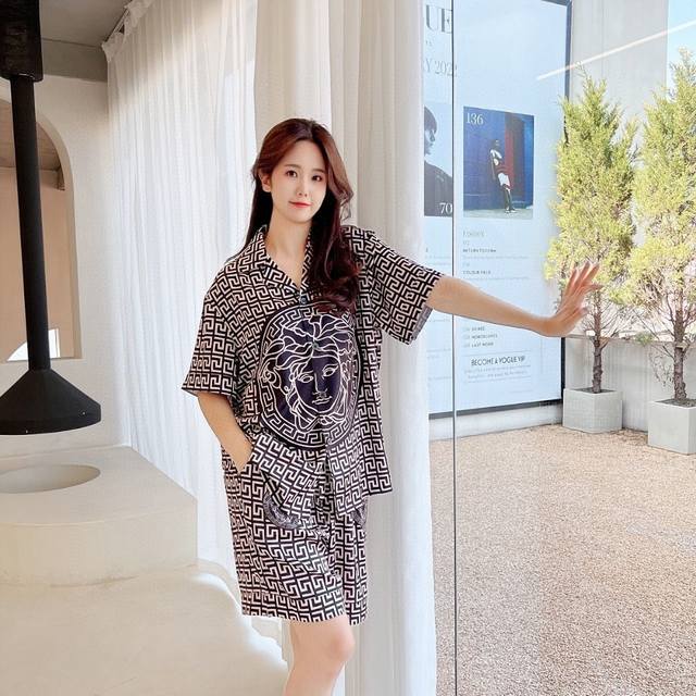 Original New Style Of The Popular Fanjia High-End Home Wear Suits, Short-Sleeved Shorts, Unisex Style, Made Of High-End Korean Silk Fabric, Comfortable To Wear, Size M 3Xl, Silk Products Should Not Be Machine Washed, It Is Recommended To Wash By Hand Or Wash In A Laundry Bag