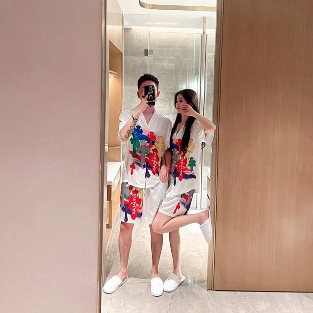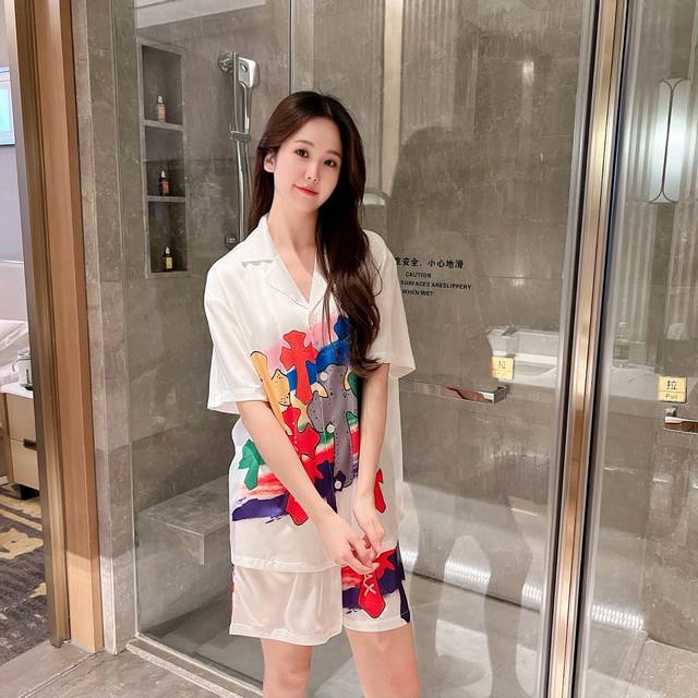 Paijia Original New Model On The Market Short-Sleeved Shorts High-End Home Wear Suit Crocs Unisex Style Using High-End Korean Silk Fabrics Comfortable To Wear Size M 3Xl Silk Products Do Not Machine Wash Recommended Hand Wash Or Laundry Bag Wash
