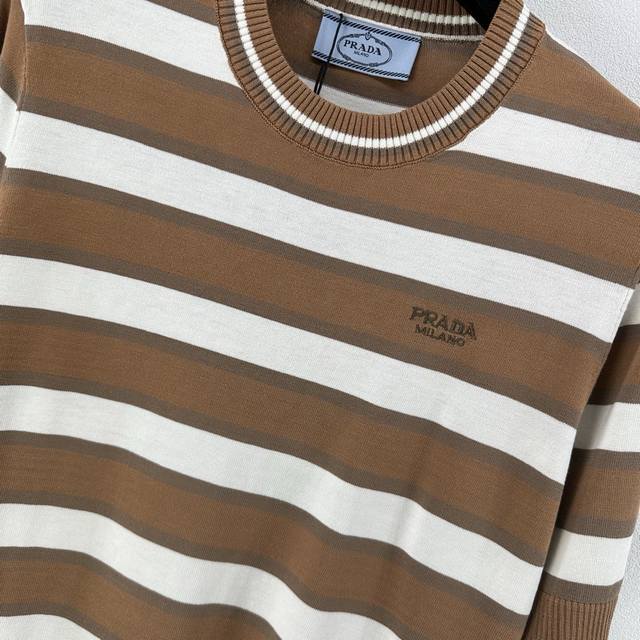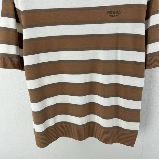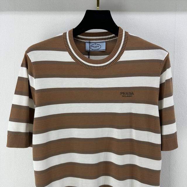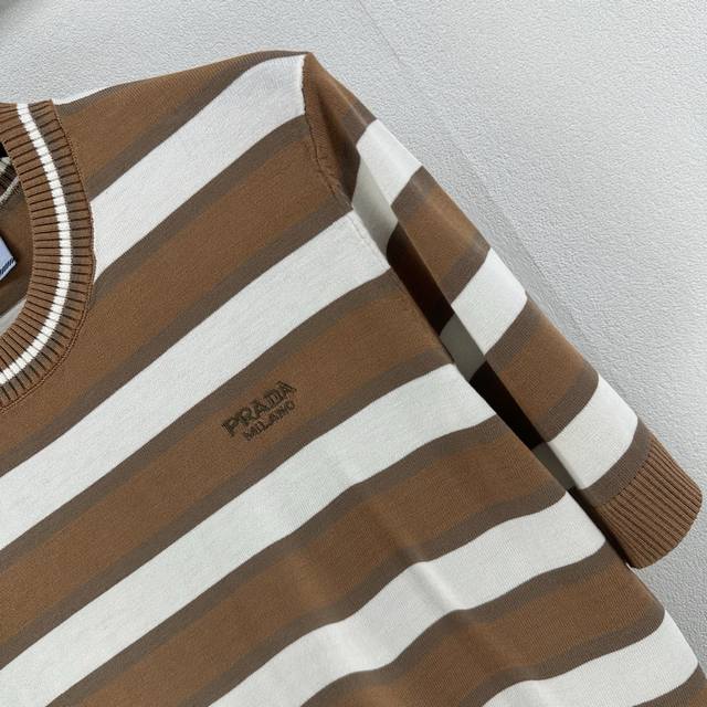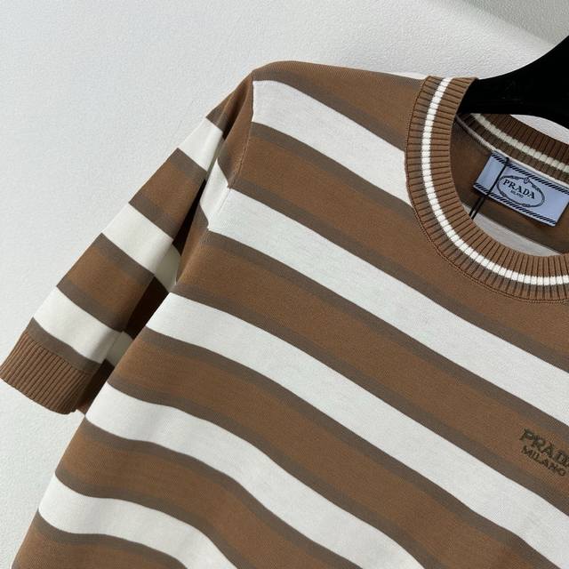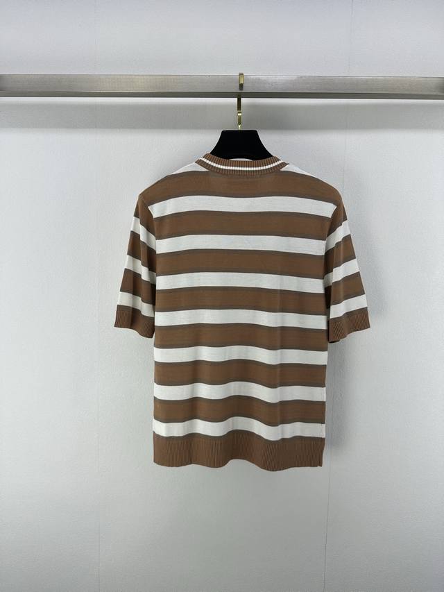 25 Spring And Summer Latest Striped Knitted Short Sleeves Customized Cotton And Wool Yarn Weaving Fixed Color And Dyeing Perfectly Restore The Appearance Soft, Skin-Friendly, Comfortable And Stylish Round Neck Short Sleeve Version Appropriate Neckline To Expose Skin And Beautify The Head-Shoulder Ratio To Make You Look Thinner The Collision Of Threaded Hemming And Large Body Stripes Creates A Sense Of Layering The Whole Body Is Interwoven With Colors The Chest Is Decorated With Letter Logos In A Retro Style Strong Slim Fit Highlights The Figure Playful And Age-Reducing, Whitening Daily Travel Or Easy Gatherings Easy To Control