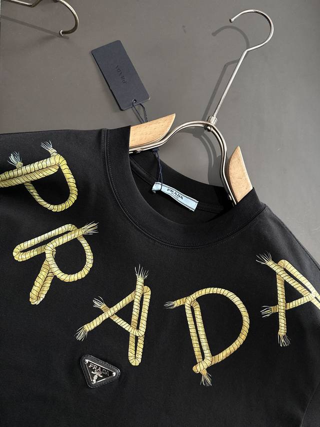 Prada 2025Ss Spring And Summer Latest Round Neck Fashion Short-Sleeved T-Shirt Official Website Synchronized Counter Pure Cotton Fabric Close To The Skin Comfortable And Durable And Easy To Wear Classic Simple Logo Design Original Factory Craftsmanship Meticulous Must-Have Item For Men Size S-Xxl