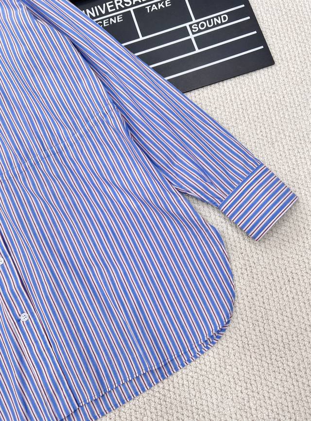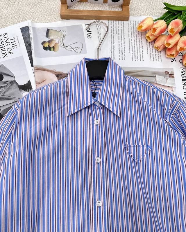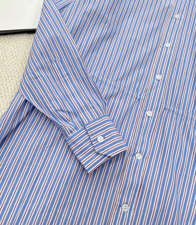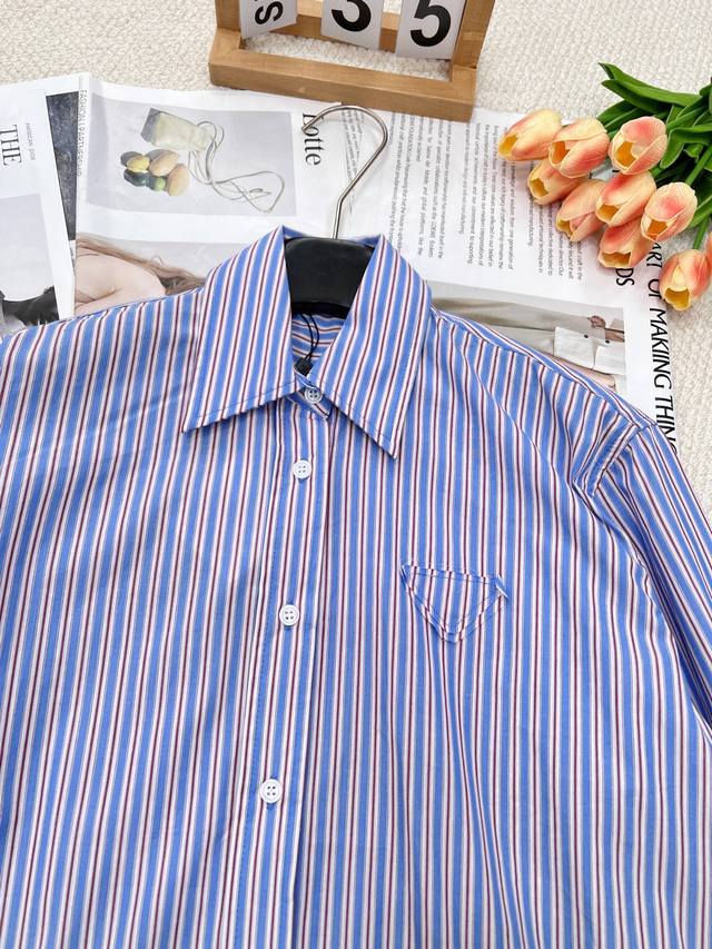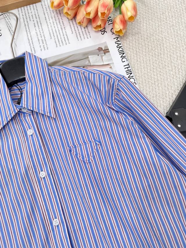 prada New Striped Waisted Long Shirt Dress Customized Yb Twill Cotton Material Comfortable And Delicate Texture Lapel Straight Shoulder Mid-Length Shirt Dress Cut And Dyed Stripes Contrasting Colors Triangle Logo Design Decoration On The Chest Highlights The Brand Style With Built-In Waistline At The Waist Can Be Gathered Or Loosened, Various Ways To Wear The Upper Body Are Full Of Lazy British Style, Can Be A Skirt Or A Top, Casual Skirt Or Pants, Exquisiteness Is Instant, Basic Shirt That Can Be Controlled For Daily Commuting And Vacation, Easy To Wear And Stylish, Customized Surface And Auxiliary Materials, Identify The Version, Three Standards Are Complete, Large Goods Are Shipped