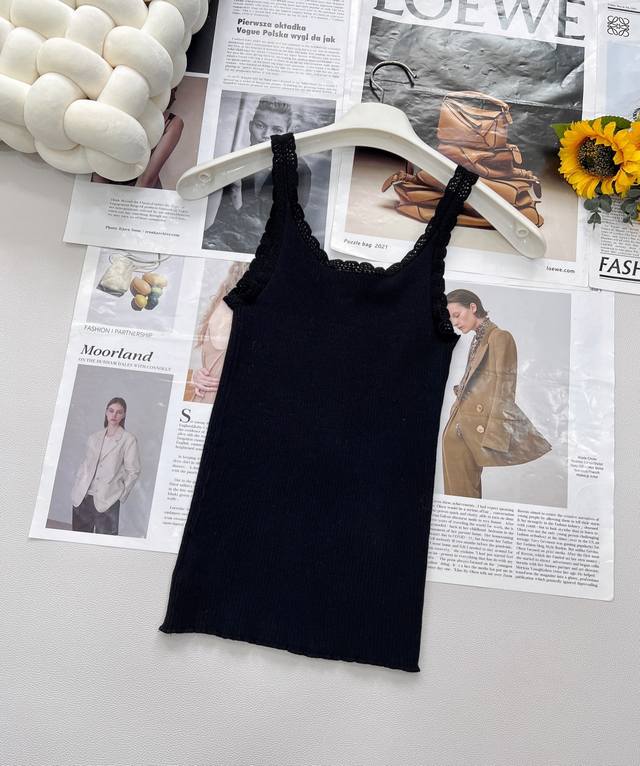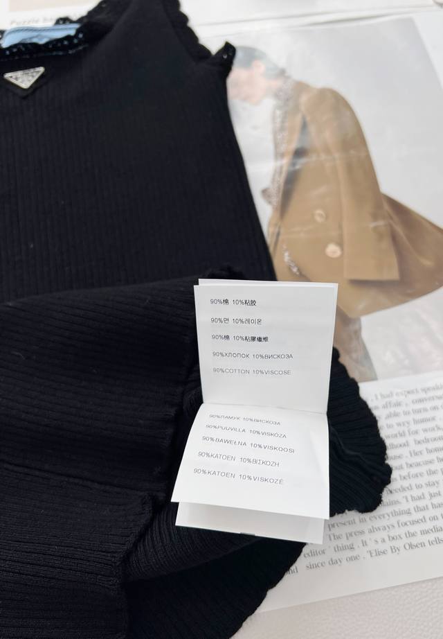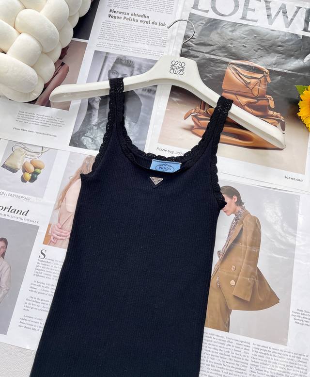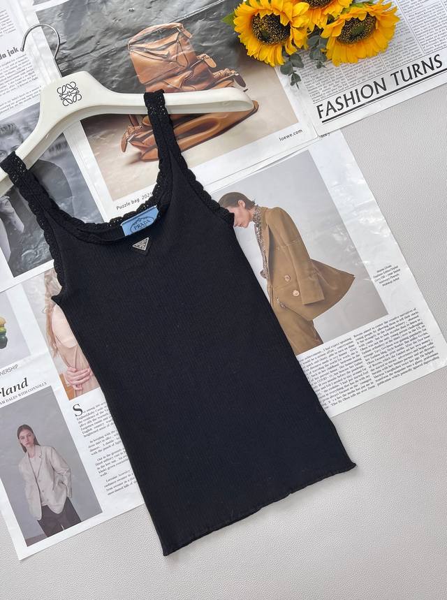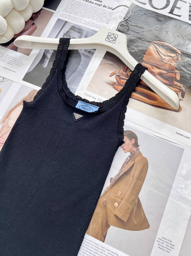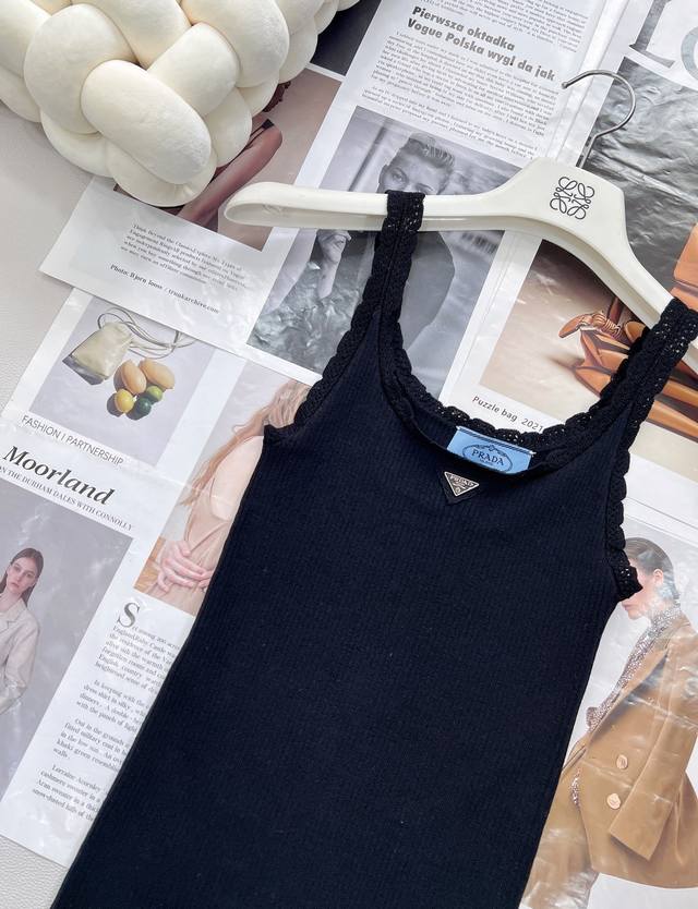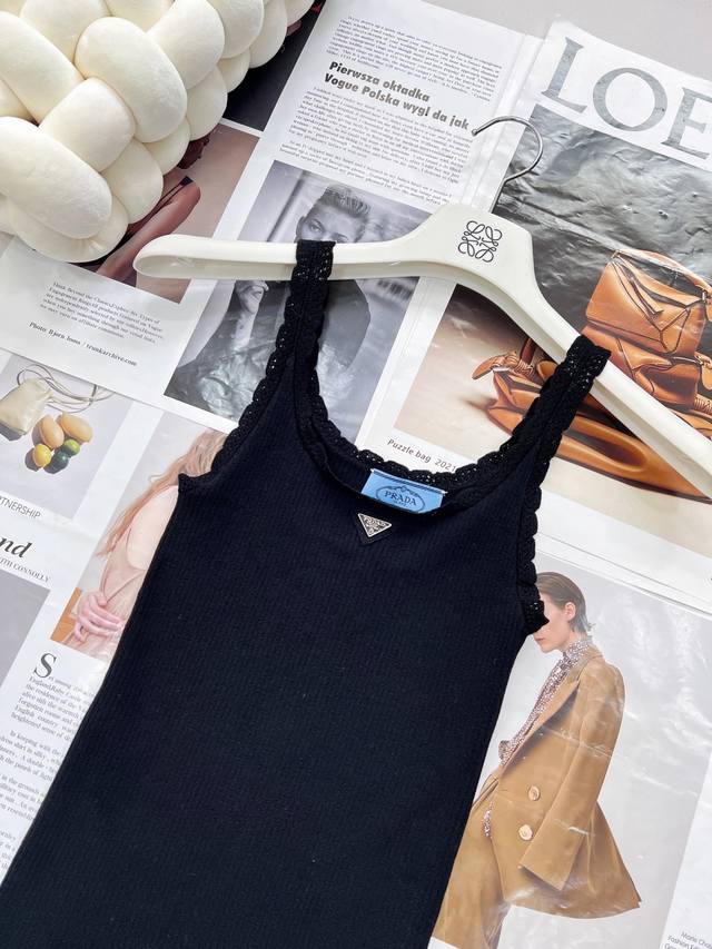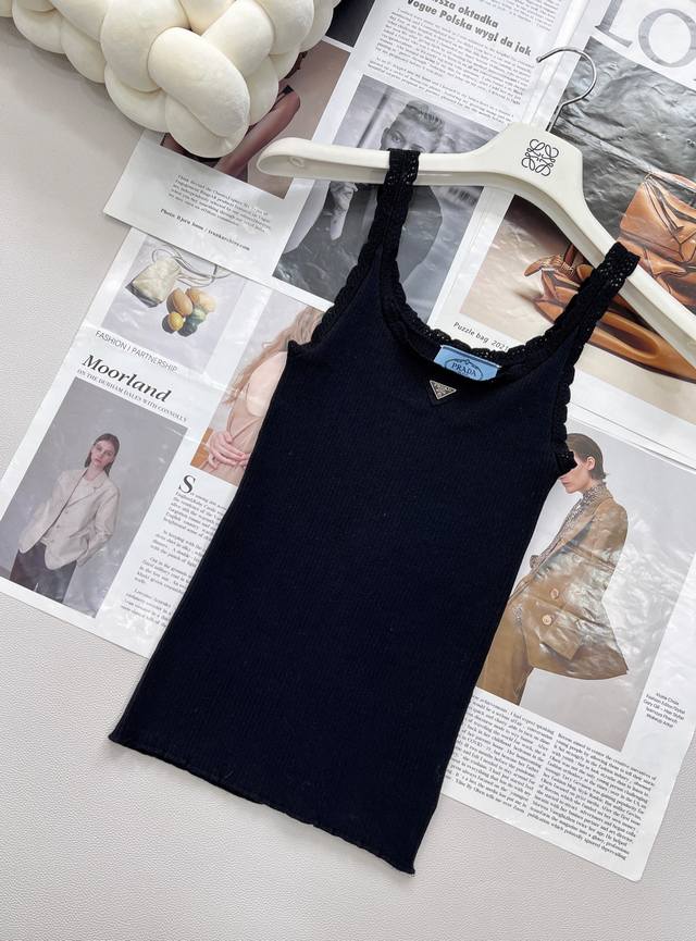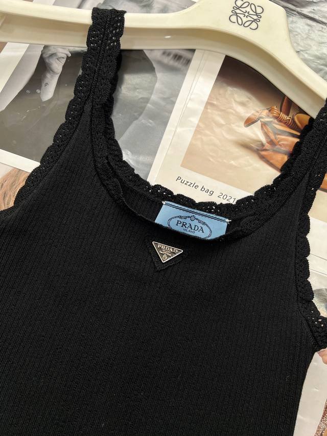 prada's New Triangle Logo Lace Knitted Vest Is Presented In Classic Black And