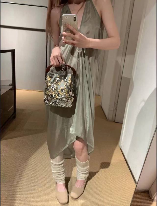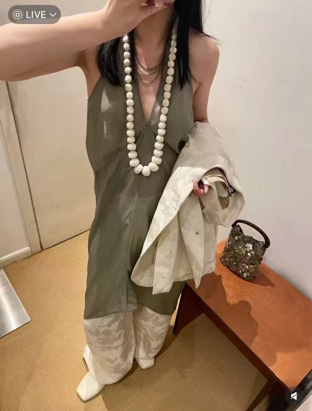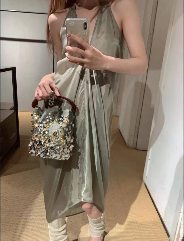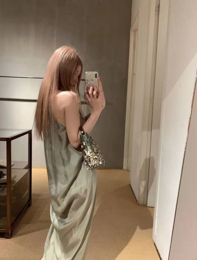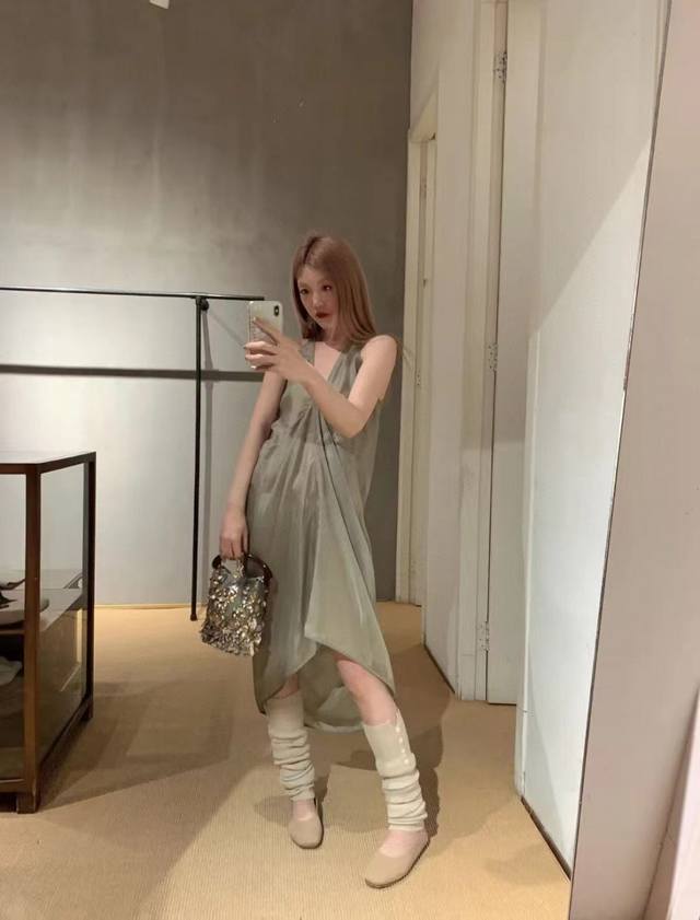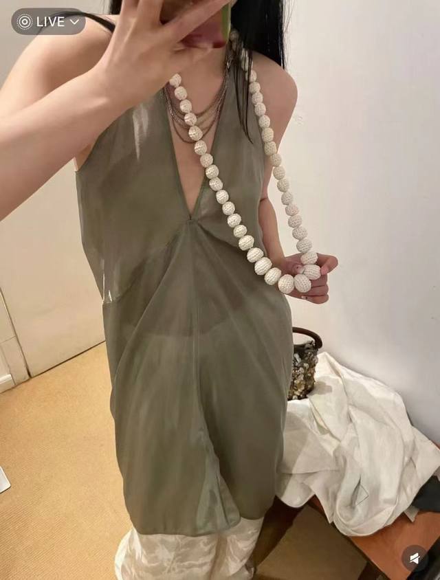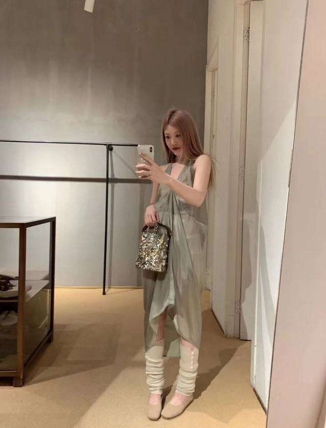 rick Owens 2025 Summer New Style Dress Copper-Ammonia Silk V-Neck Sleeveless