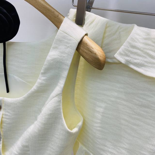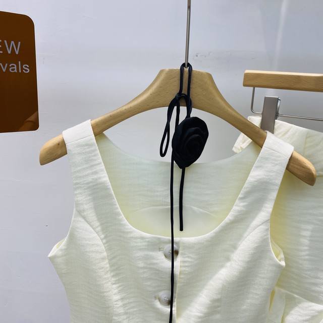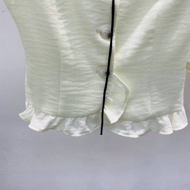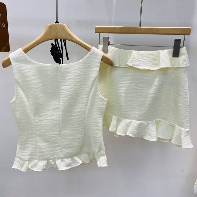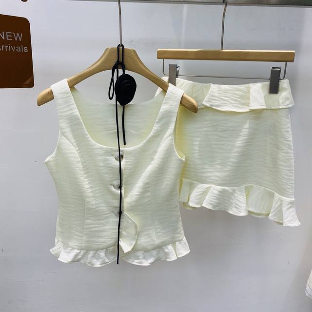 Ruffled Textured Skirt Round Neck Button Vest Top Short Skirt Suit Sml