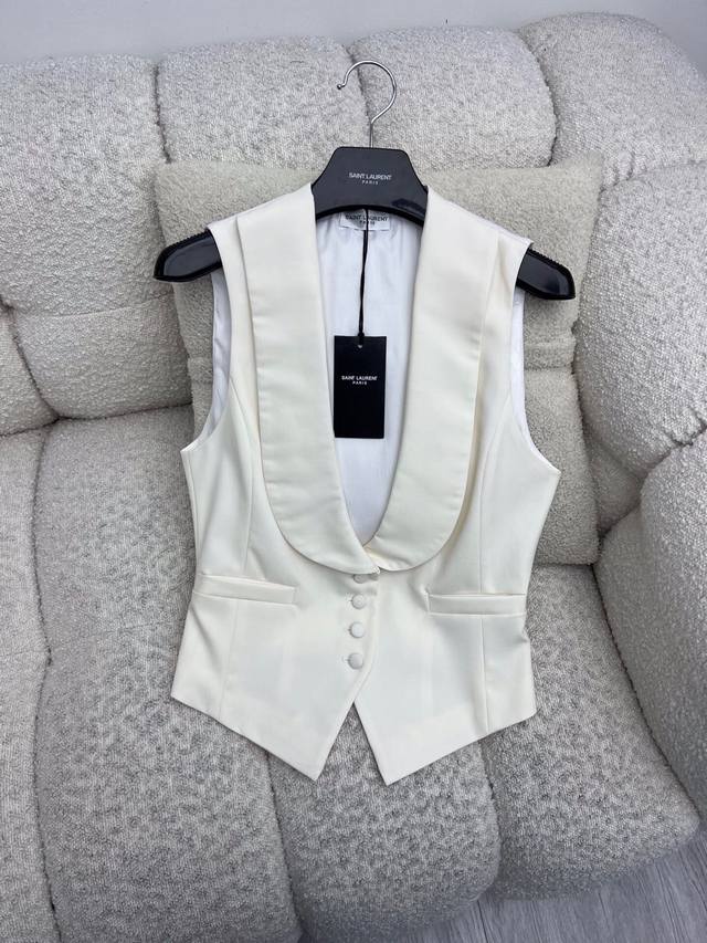 saint Lauren*U-Neck Vest Made Of High-Quality 100% Wool Fabric Curved U-Neck