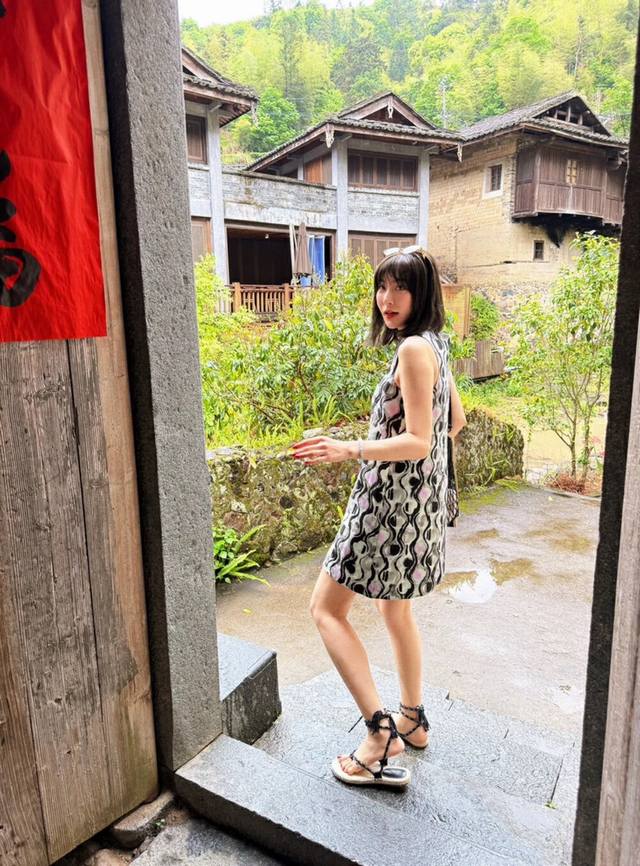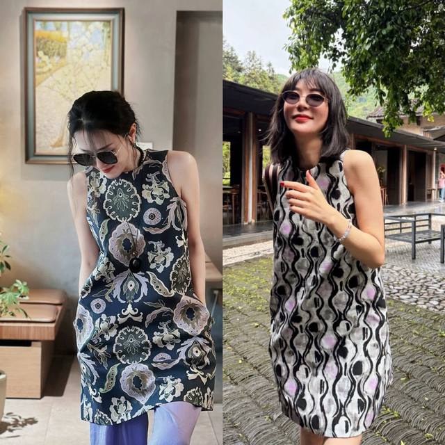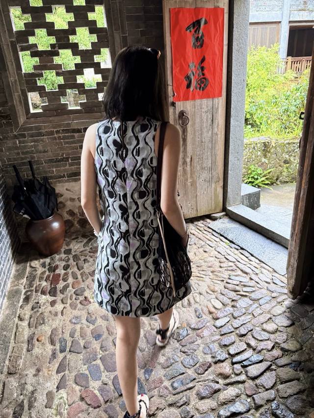 / Simple Style Retro Imported High-Branch Cotton Printed Vest Dress Black Flower S