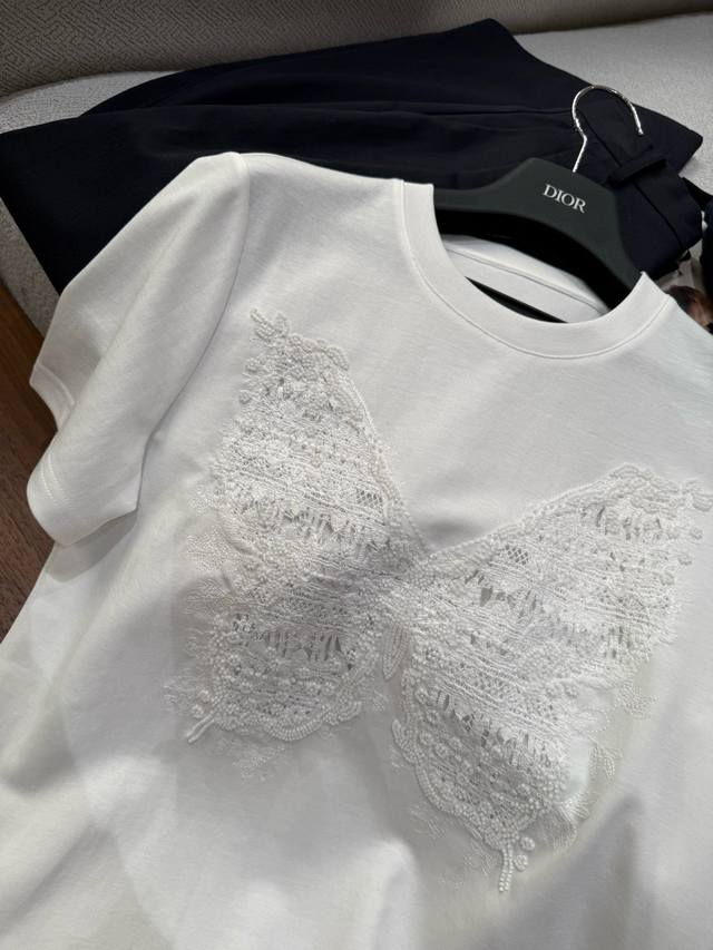 Spring And Summer Update - Dior Butterfly Embroidery Beaded T-Shirt