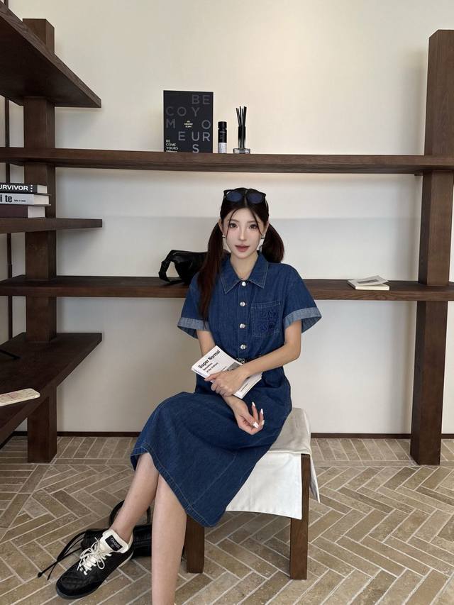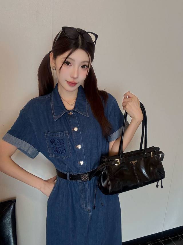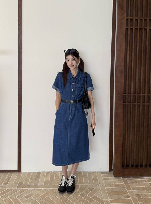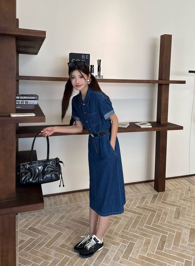 Strongly Recommend Loe*2025 Spring And Summer New Denim Short-Sleeved Belt Dress Positioning Active Fermentation Washing Eye-Catching Design Girl Functional Style Can Be Sweet Or Salty Upper Body Handsome And Cool Retro Washed Denim Reinterprets The Fashionable Single Product Design Version Is Versatile And Not Picky About People Workmanship Quality See Details One Color Sml Code High Quality