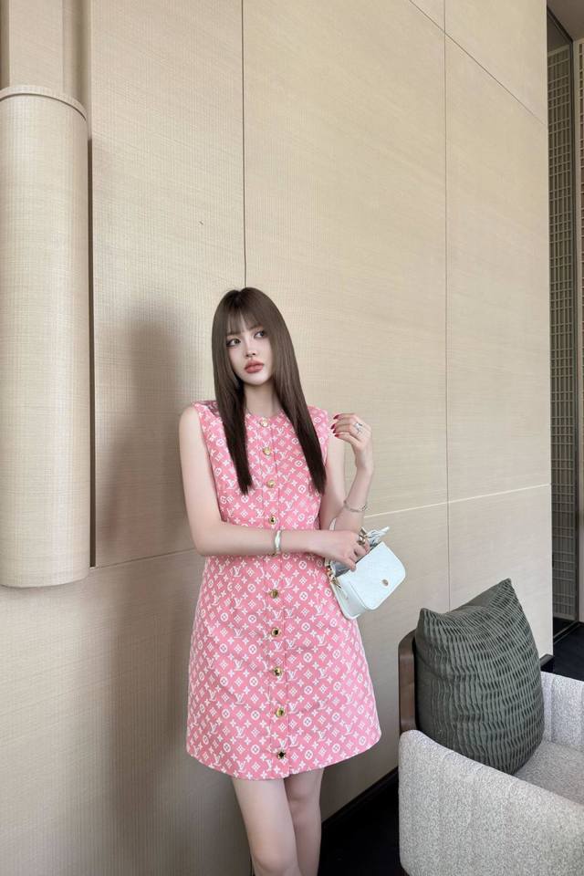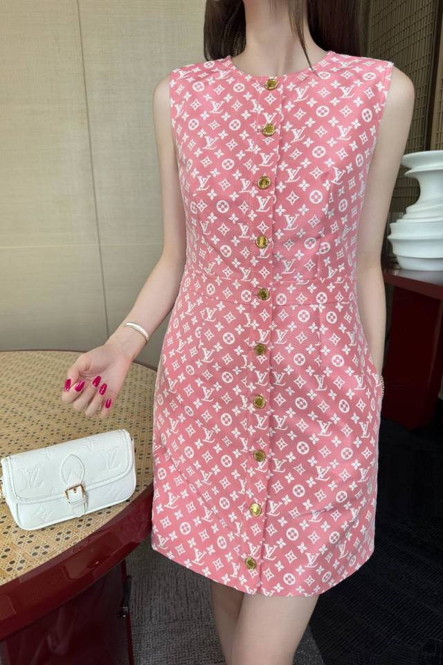 Strongly Recommends Lv*2025 Spring And Summer New Printed Sleeveless Vest Dress,