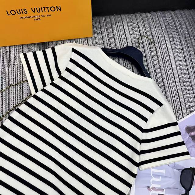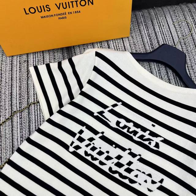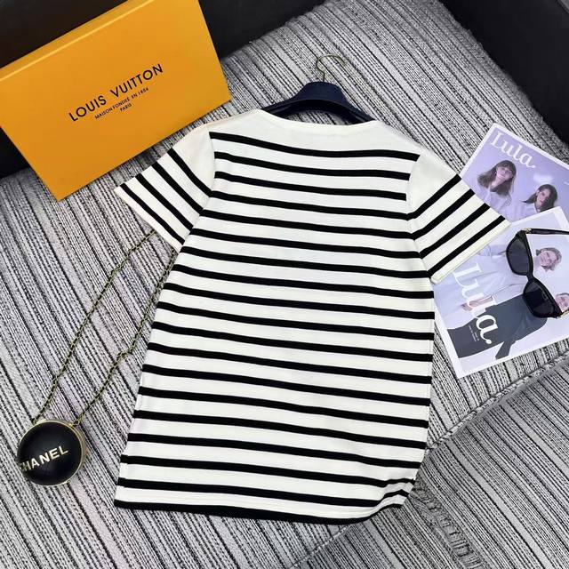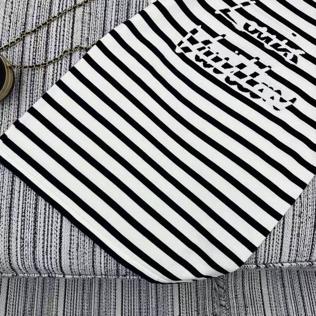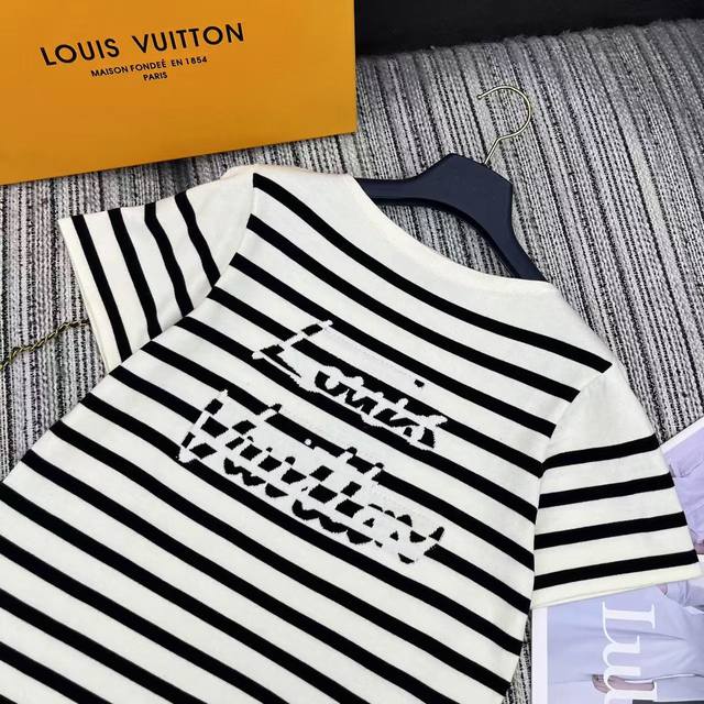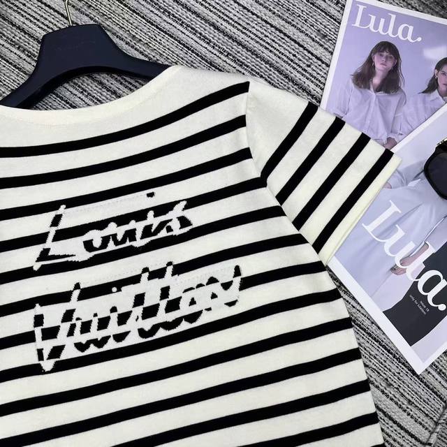 Strongly Recommends The 25Th Year Early Spring And Summer Series Lou* Letter Print Striped Knitted Short-Sleeved Top Two Colors Sml