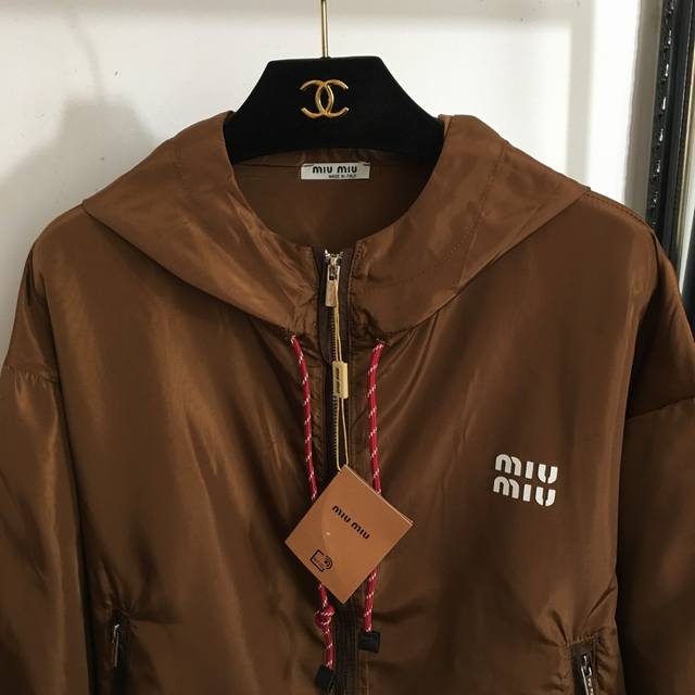 Style No. 20251163 Miumi* New Logo Offset Long Sleeve Hooded Short Windbreaker Z