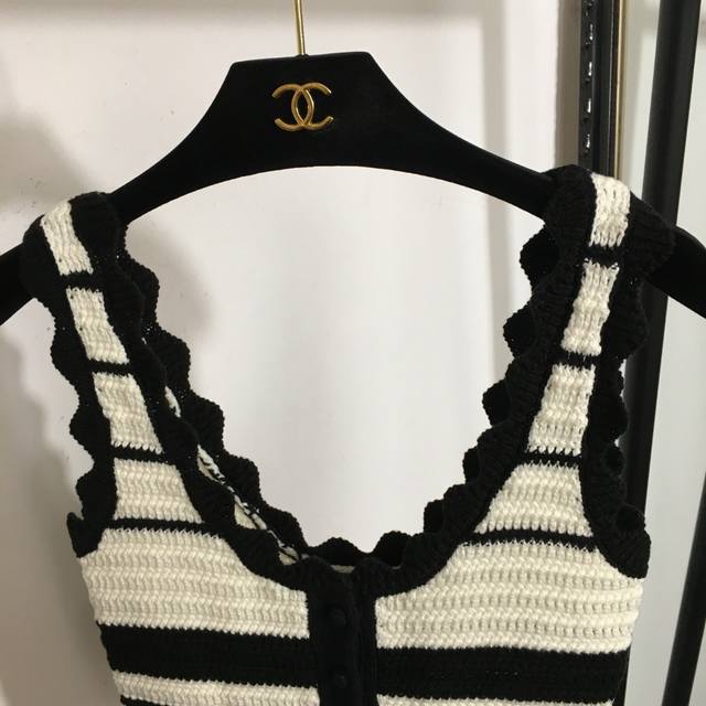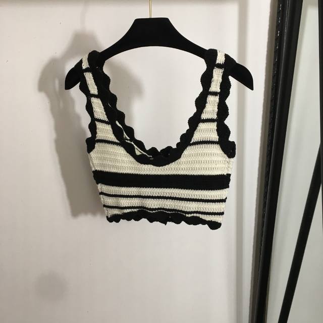 Style No. 20253006 Miumi* New Knitted Suit Colorblock Wave Edge Sweet Short Tank