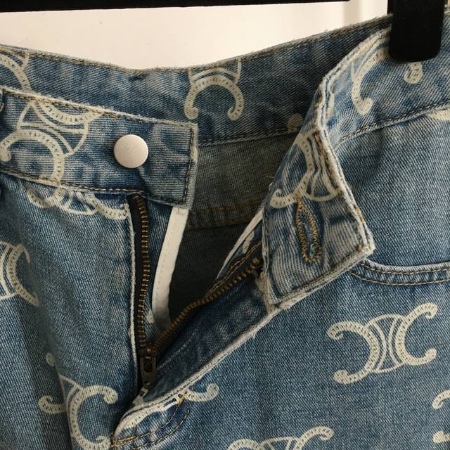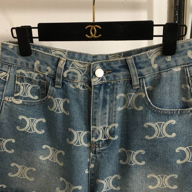 Style No. 20253170 Celin* New Arc De Triomphe Logo Printed All-Match Denim Shorts Blue S-Xl M Waist 72 Length 36