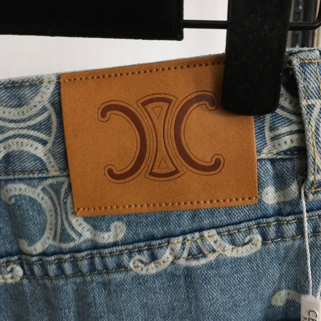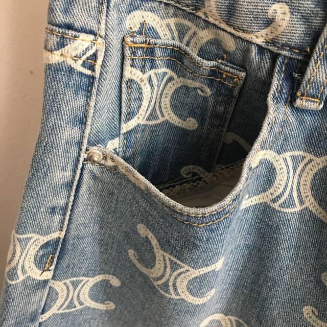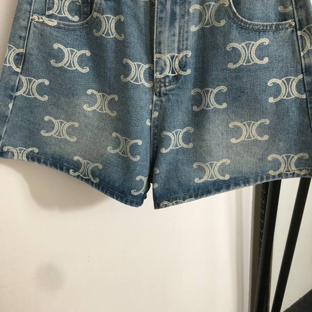 / Style No. 20253170 Celin* New Arc De Triomphe Logo Printed All-Match Denim Short