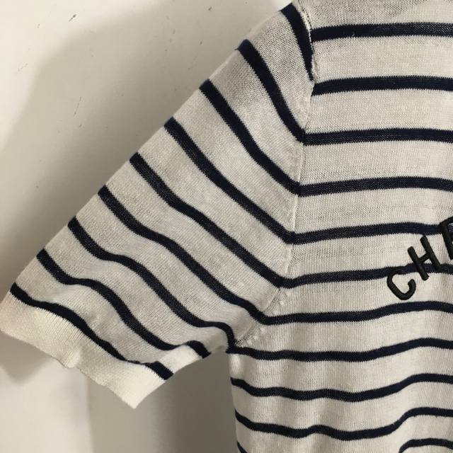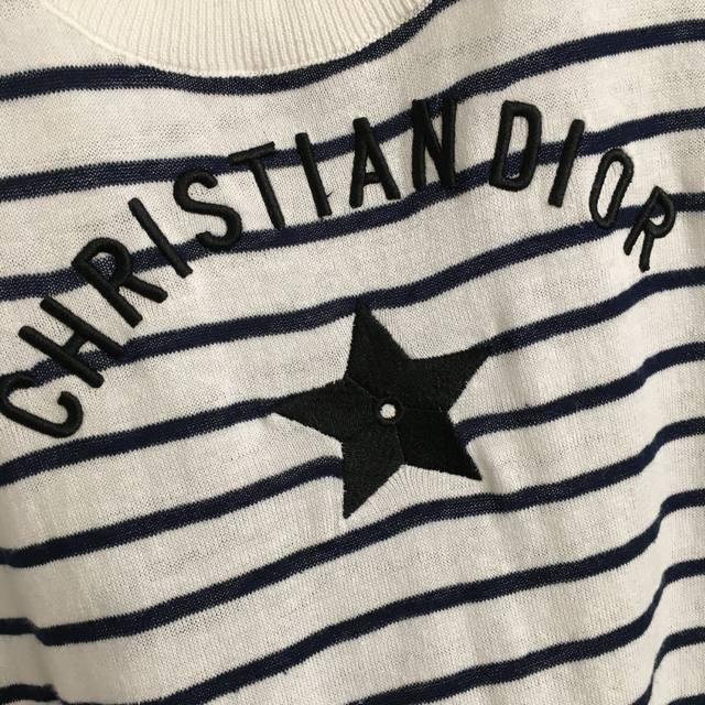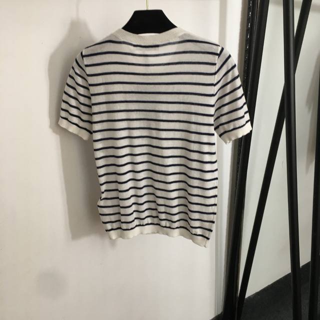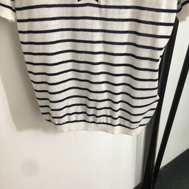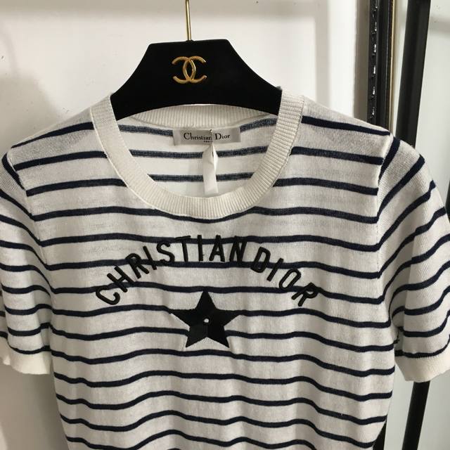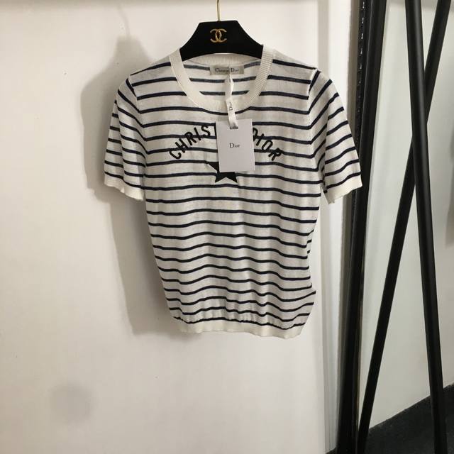 Style No. 20253246 Dio* New Five-Pointed Star Logo Embroidered Striped Short Sleeve Knit Top White 36 38 40 36 Size Bust 82 Sleeve Length 21 Length 53