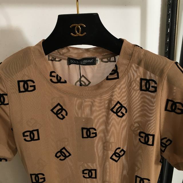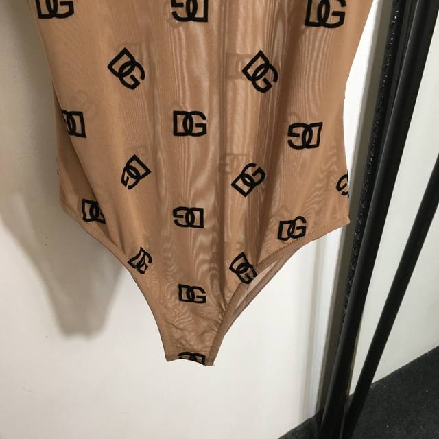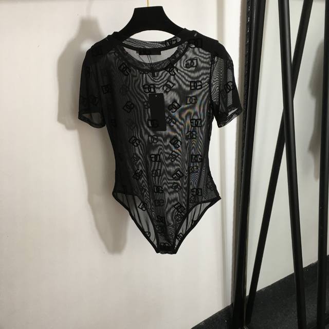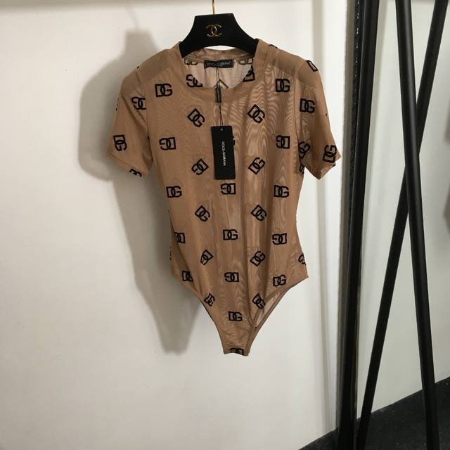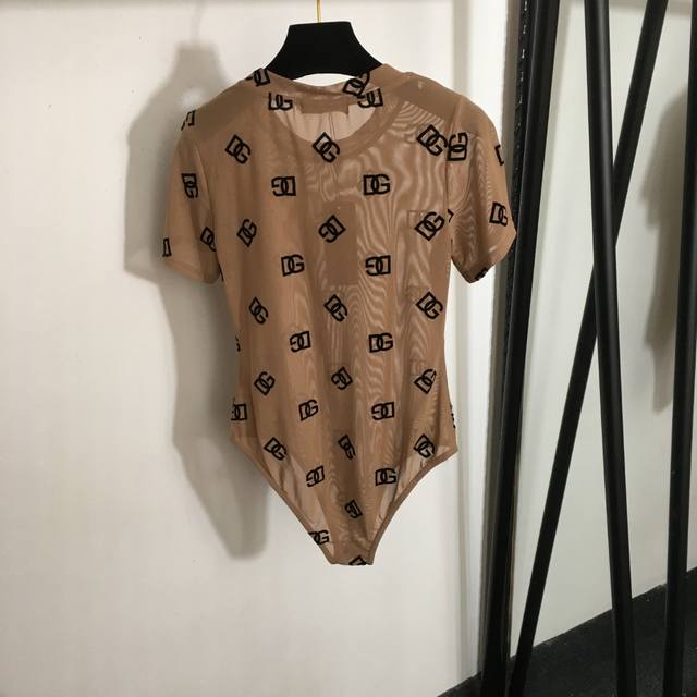 Style No. 7558 Dg* New Flocking Logo Letter Slim Fit Short-Sleeved Bodysuit Top