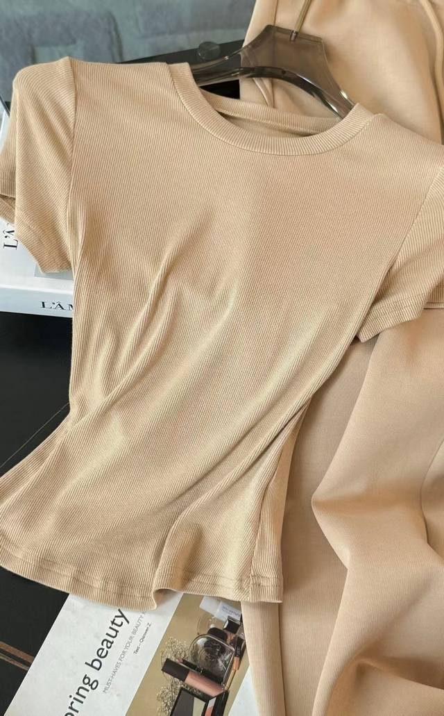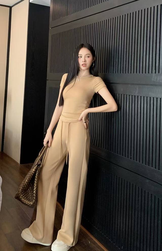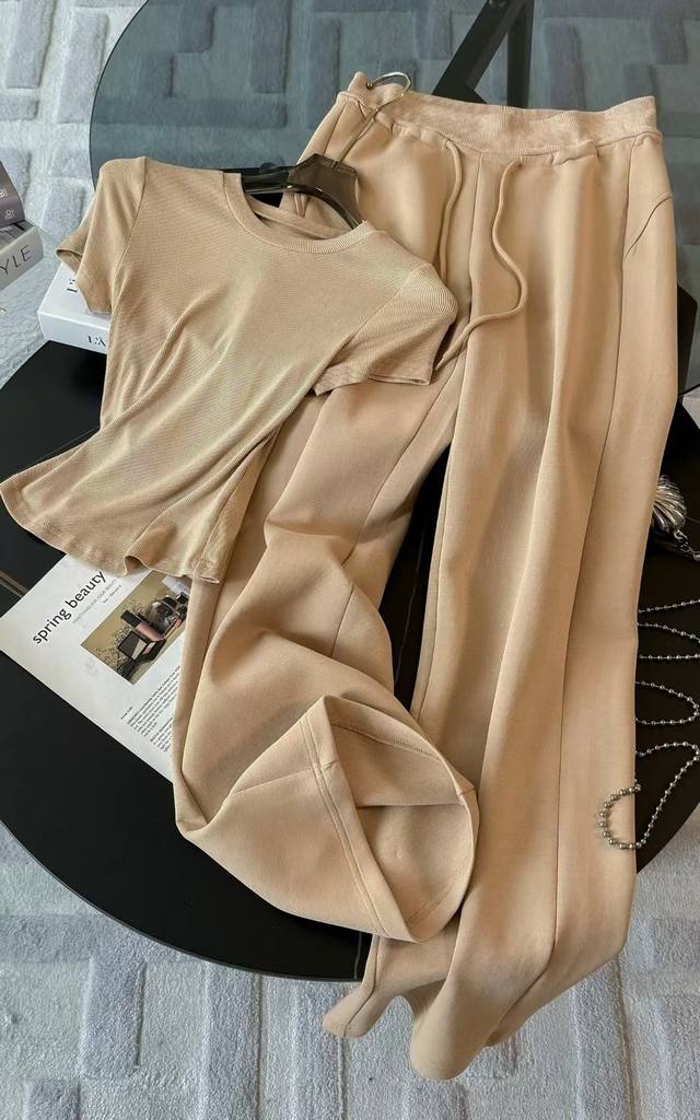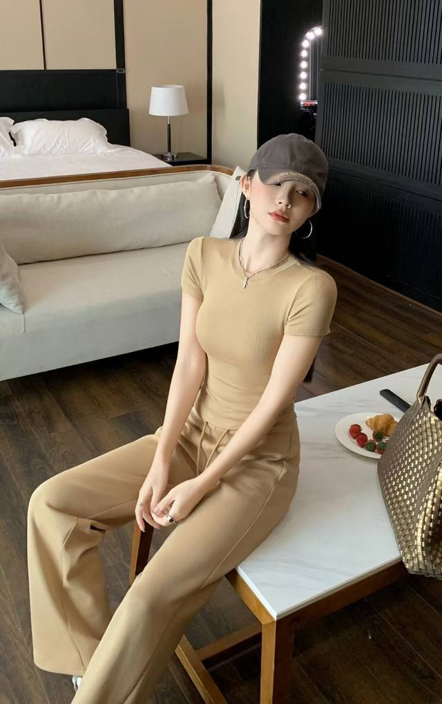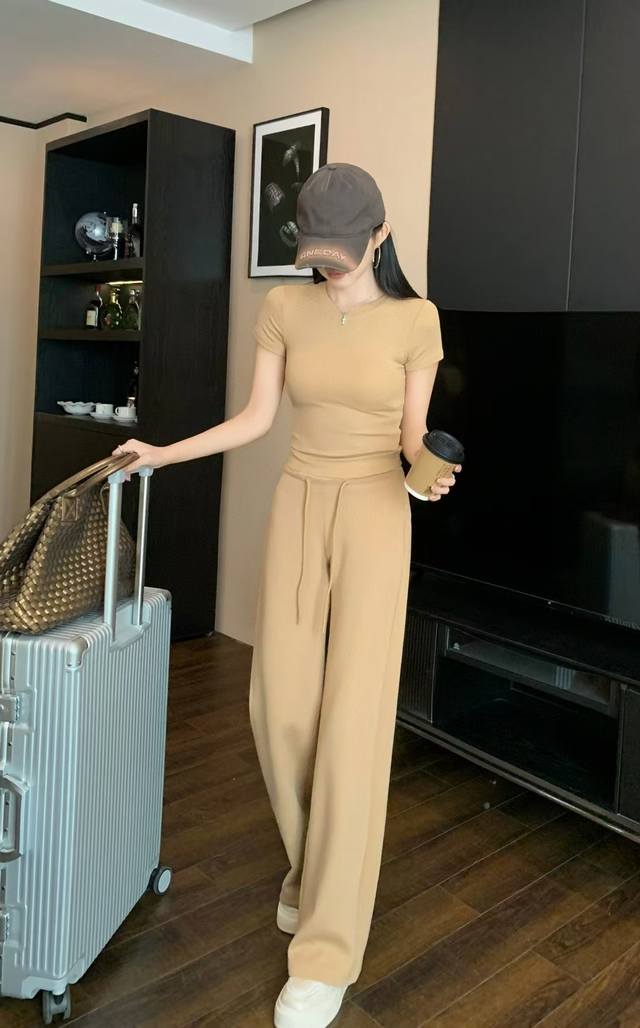 Summer Tight T-Shirt Trousers Suit Fabric Cotton Polyester. Spandex 68.45.60.100 Small Size Data Is Bust Length Waist Trousers Length