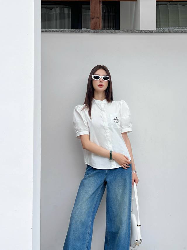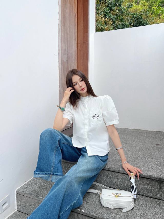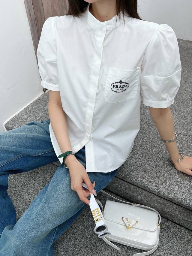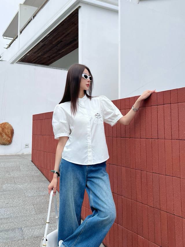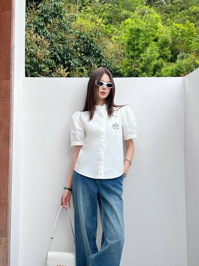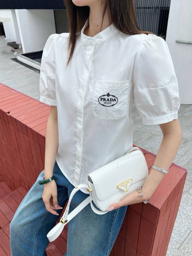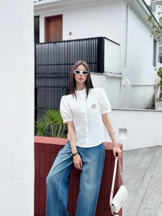 The Latest Spring And Summer Loho Letter Embroidery Decoration Short Design Shirt Casual Lazy And Design Sense Upper Body Is A Very Meat-Hiding Version Of Any Body Shape Easily Controlled Chest Embroidery Logo Embellishment Fashionable And Elegant With Two Colors Ready For Sale Sml