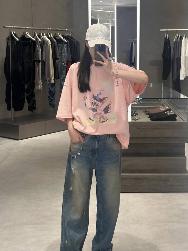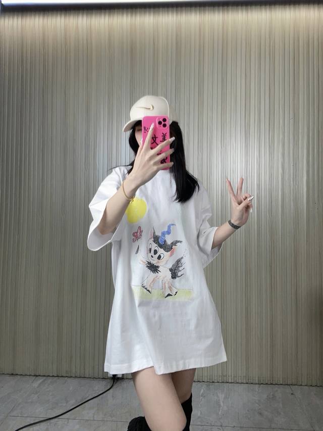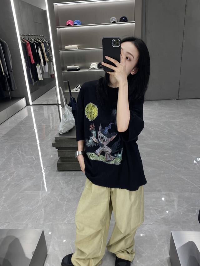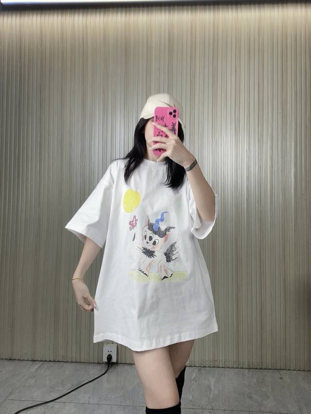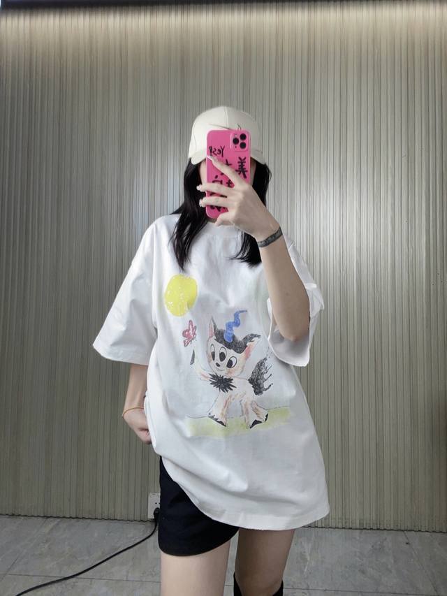 Synchronous We11Done Official Website 25Ss Spring And Summer New Color Three-Eyed Monster Deer Print Short-Sleeved T-Shirt