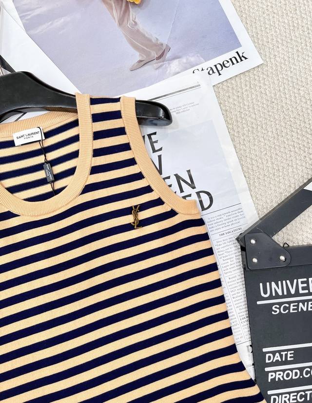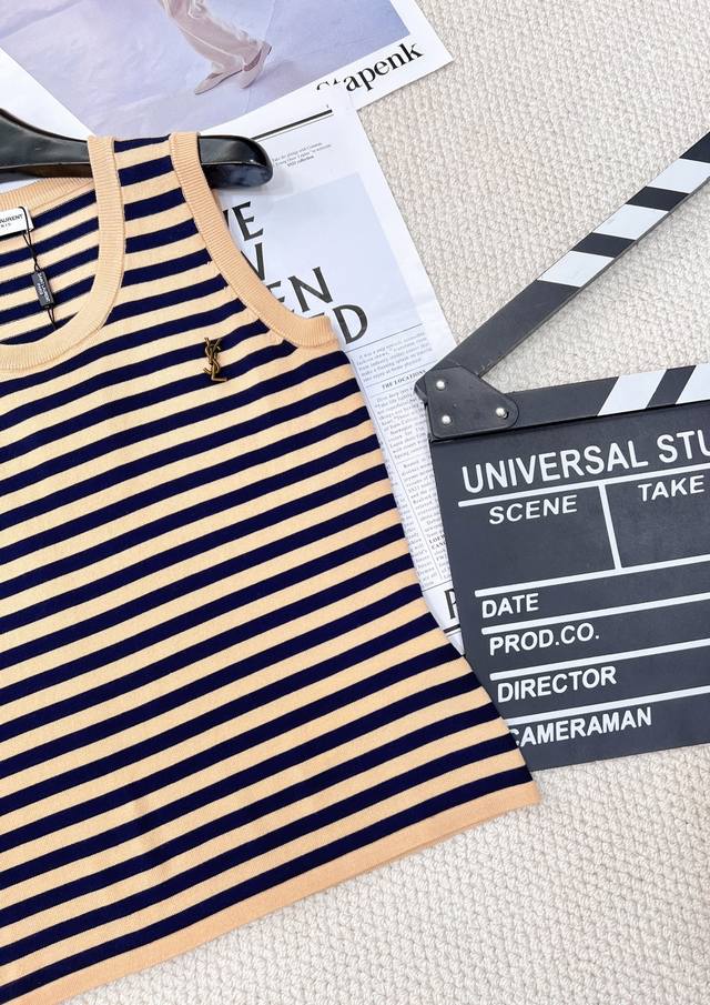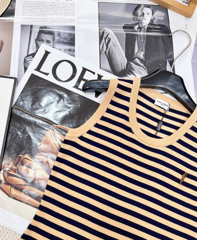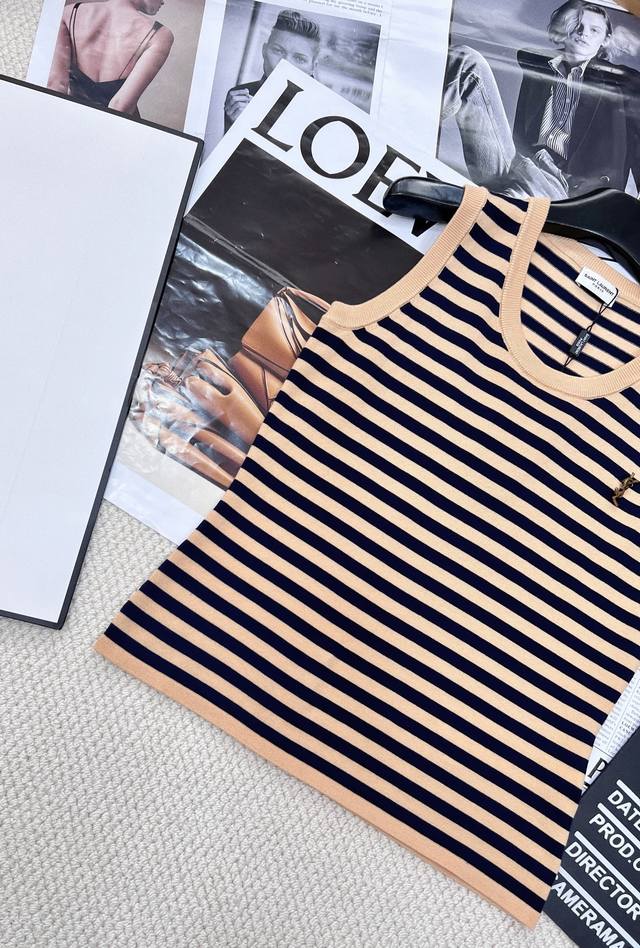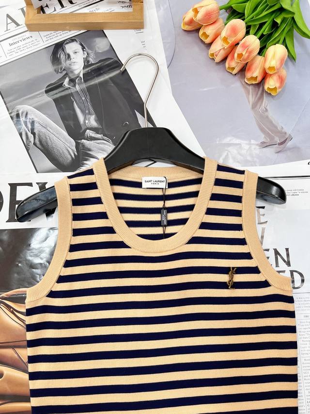ysl Sleeveless Vest With Striped Letter Logo Brooch A Vest That Combines Comf